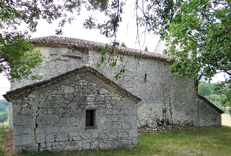 L'église Saint-Thomas, située au lieu-dit Saint-Thomas à Hautefage-la-Tour (Lot-et-Garonne), est un édifice catholique d'origine romane. Les parties les plus anciennes remontent à la première moitié du XIIe siècle, comme l'attestent son chevet à modillons et ses métopes perforées, caractéristiques partagées avec un groupe d'églises quercynoises et agenaise du bassin de la Lémance. Ce chevet présente une corniche ornée de métopes perforées et a été ensuite rehaussé de deux assises en moellon enduit. La nef a été reconstruite en appareil régulier, peut‑être au XIIIe siècle, ce que suggère le portail sud en plein-cintre aujourd'hui muré et à demi-enterré. Un clocher‑mur au couronnement triangulaire couronne l'édifice. La sacristie, construite au XVIe siècle, comporte des fenêtres rectangulaires chanfreinées et une voûte cintrée en petit moellon, désormais masquée par un plafond en bois. En 1551, le vicaire Vallier fit bâtir une caminade (presbytère) près de l'église ; ce bâtiment semble avoir été remplacé en 1833 et était encore attenant en 1906. Après les guerres de Religion, l'édifice connut peu de transformations : la partie occidentale de la nef porte des traces de reprise, et le clocher‑mur ainsi que le porche furent rebâtis à une époque indéterminée. Le pignon du mur ouest fut exhaussé et la porte d'entrée refaite au XIXe siècle. Une large fenêtre en arc segmentaire à linteau délardé a été percée dans le mur sud à la fin du XVIIIe ou au début du XIXe siècle. Des travaux mineurs eurent lieu au troisième quart du XIXe siècle : une tribune datée de 1867 et des réparations financées par une souscription de 1 500 francs en 1869. L'église Saint-Thomas est inscrite au titre des monuments historiques depuis le 27 septembre 1996.