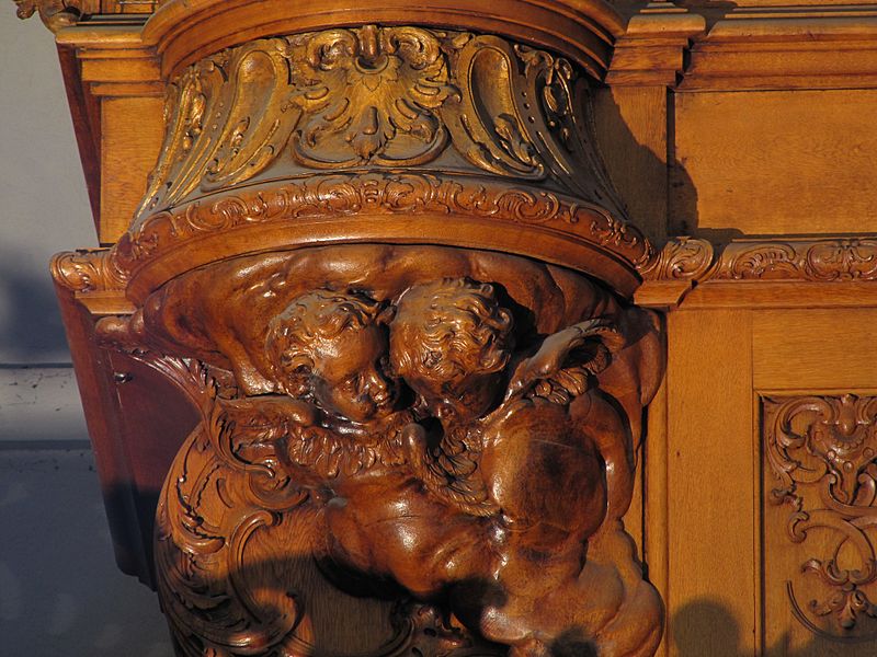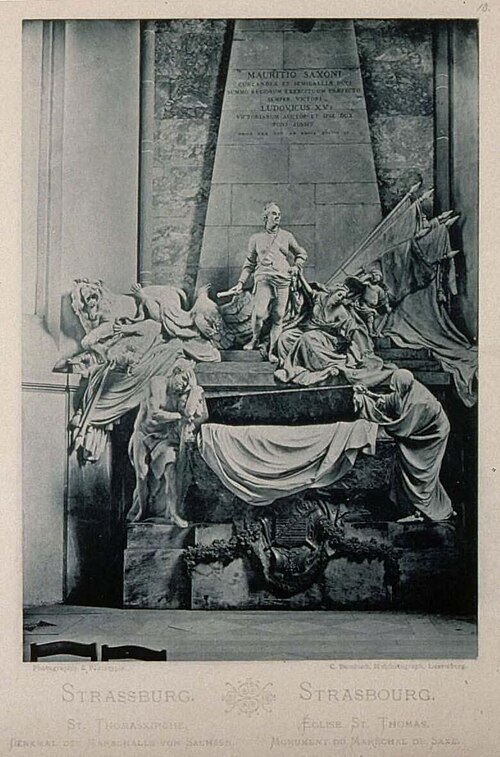 L'orgue de chœur, construit d'après des plans d'Albert Schweitzer par la manufacture Haerpfer-Dalstein en 1906, améliore l'accompagnement du chœur paroissial et témoigne de l'implication de Schweitzer dans la vie musicale de l'église. Parmi les monuments funéraires figurent le sarcophage roman de l'évêque Adeloch, conservé dans la partie sud-est, et le grand mausolée baroque du maréchal de Saxe, œuvre de Jean-Baptiste Pigalle, dont la réception publique constitua un acte de reconnaissance du protestantisme. La fresque gothique tardive représentant saint Michel terrassant le dragon, attribuée à Jost Haller et dévoilée lors de travaux en 1885, compte parmi les plus vastes peintures murales de ce type en France. La rosace de la façade contient des vitraux médiévaux dont la composition centrale a été préservée malgré plusieurs restaurations, et des vitraux contemporains conçus par Gérard Lardeur ont été installés dans les fenêtres du chœur en 1985.