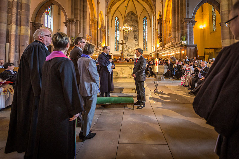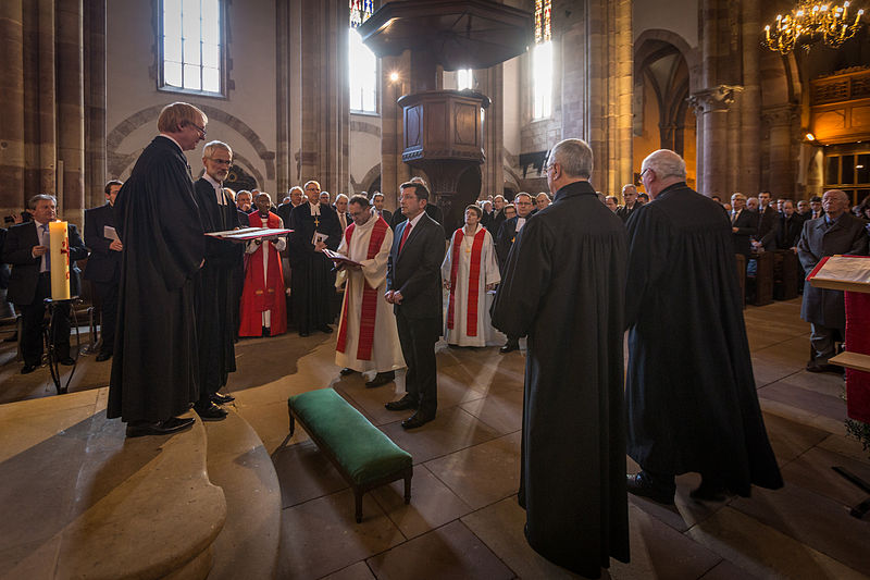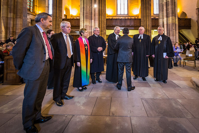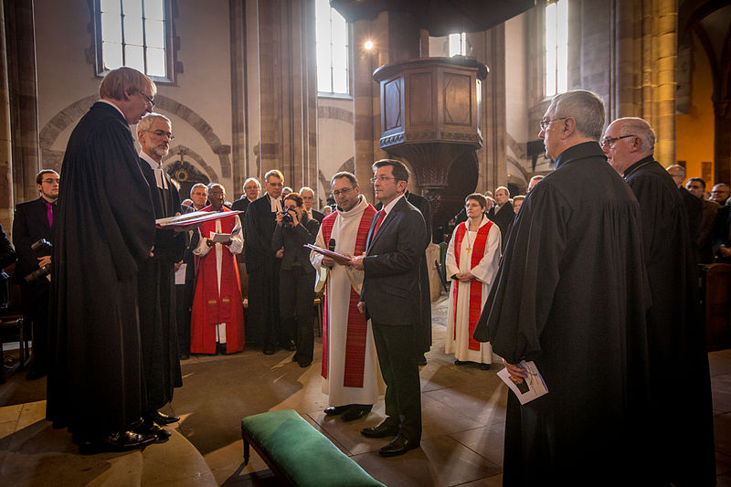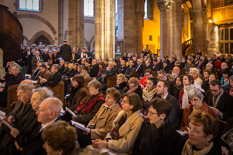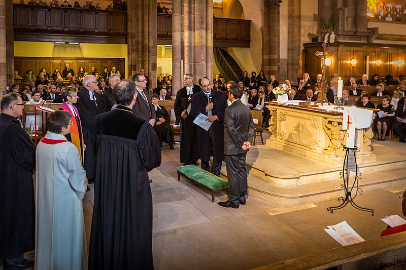 Trois lustres en laiton de la première moitié du XIXe siècle sont classés au titre des monuments historiques, et les fonts baptismaux octogonaux, attribués à la fin du XVe siècle, ont été réinstallés à l'intérieur vers 1975. La sonnerie actuelle comprend six cloches après l'ajout en 2009 de quatre cloches coulées par la fonderie A. Bachert, complétant le bourdon de 1783 et formant l'une des plus importantes sonneries protestantes de France. Le Chapitre demeure responsable du séminaire protestant voisin et du Foyer Jean Sturm, assurant la continuité des fonctions cultuelles et éducatives liées à l'église.