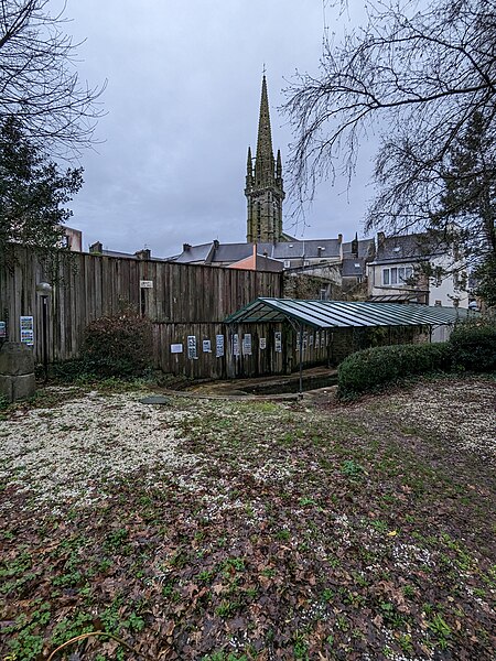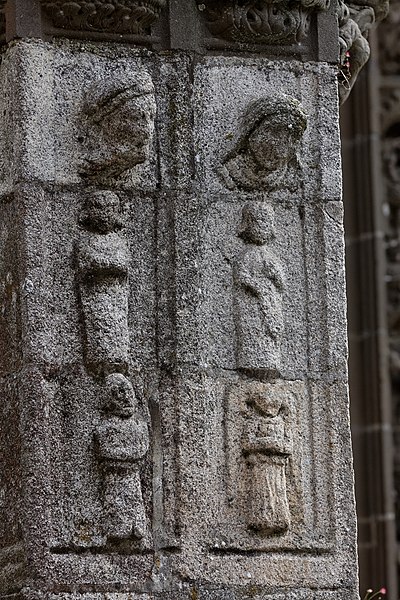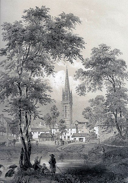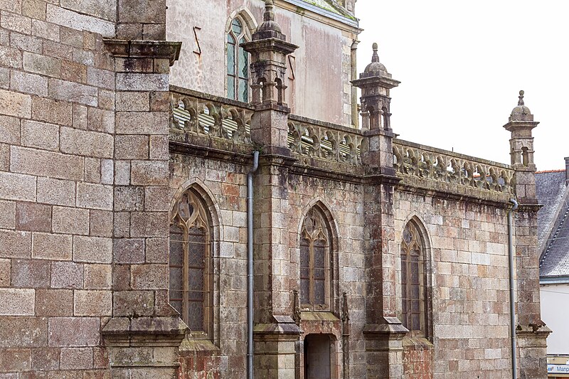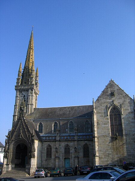 L'église Saint-Thivisiau a fait l'objet d'une reconstruction au XIXe siècle : les sources mentionnent 1863-1864 d'après les plans de l'architecte Édouard Puyo de Morlaix, certaines indiquant 1864-1865. De l'édifice antérieur subsistent plusieurs éléments : le portail du XVIe siècle, qui porte extérieurement la date 1559 et intérieurement 1554, est orné de niches décorées ; le clocher est daté de 1590 ; le porche sud est daté de 1554. Les contreforts extérieurs du porche sont percés de niches abritant les statues des quatre évangélistes ainsi que celles de la Vierge et de Sainte-Anne. En 1728, le porche a été démonté puis remonté par Jean Perrot et Sébastien Roussel.
