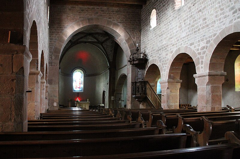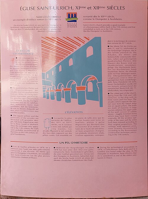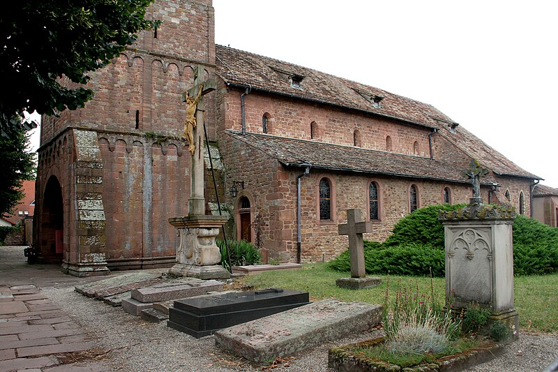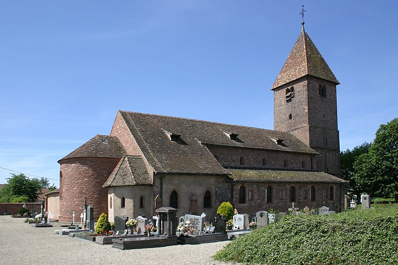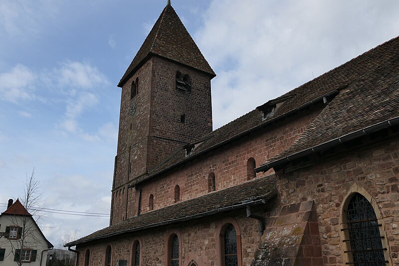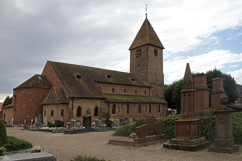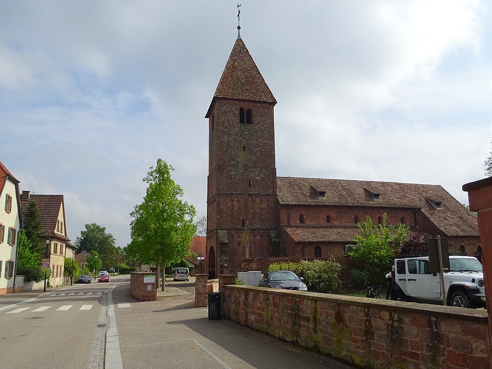 L'église Saint-Ulrich se situe rue Principale à Altenstadt, commune associée à Wissembourg dans le Bas‑Rhin. Les parties les plus anciennes de l'édifice, notamment le mur ouest de la nef et le mur oriental du bas‑côté sud, remontent selon la taille de la pierre au milieu du XIe siècle. Les niveaux inférieurs de la tour‑porche datent de la première moitié du XIIe siècle; la surélévation de la nef, les niveaux supérieurs de la tour, le mur nord de la nef et les grandes arcades réalisées au ciseau (« épis de blé ») appartiennent au troisième quart du XIIe siècle. Vers 1220, on ajoute au nord du chœur une chapelle voûtée dotée d'une abside à pans coupés. Après les dommages subis durant la guerre des Paysans, des travaux de restauration sont entrepris après 1528 : la chapelle sud, l'arc la reliant au chœur, la voûte du chœur, ainsi que l'ouverture et le fermeture de certaines portes et fenêtres datent de cette phase. Le portail occidental, qui proviendrait de la collégiale Saint‑Étienne de Wissembourg détruite en 1525, aurait été installé à Altenstadt à cette époque. Au début du XVIIIe siècle l'église, alors en mauvais état, est rénovée et consacrée en 1719 avec quatre autels; la double arcade sur colonne séparant la chapelle nord du chœur, marquée par les marques de tâcherons A et H, remonte à ces travaux. Les fenêtres des bas‑côtés ont été percées vers 1860, tandis que l'abside du chœur, l'absidiole de la chapelle sud et la nouvelle sacristie datent des travaux de 1878–1879 menés d'après des projets de Ch. Winkler ; ces travaux comprennent également la reconstruction de l'arc triomphal et des contreforts de la tour. Les fondations et les étages de la tour ont ensuite été renforcés entre 1903 et 1906 selon des projets d'A. Sautier. Lors de la restauration de 1955–1958, quatre fenêtres du vaisseau central retrouvèrent leur dimension primitive et la flèche à quatre pans de la tour fut rétablie. Classée au titre des monuments historiques depuis 1898, l'église présente un plan basilical romain : trois nefs charpentées et une tour‑porche datent du XIIe siècle, tandis que les trois absides du chœur appartiennent à des époques différentes, l'absidiole nord étant gothique et les autres datées du XIXe siècle. La nef romane comprend cinq travées ouvertes sur les bas‑côtés par des arcs en plein cintre reposant sur des piliers en pierre de taille qui, initialement carrés, ont vu leurs angles abattus pour former une section octogonale. On note enfin un linteau sculpté de sept médaillons représentant la main de Dieu au centre, des agneaux, des motifs végétaux et des formes géométriques, portant l'inscription J+HOC QUI COENOBIUM CUPITIS TRANSIRE DECORUM POSITE SUPREMAM ABBATIS VENIAM LIUTHAR(DI) SUBERAM.