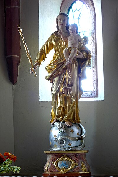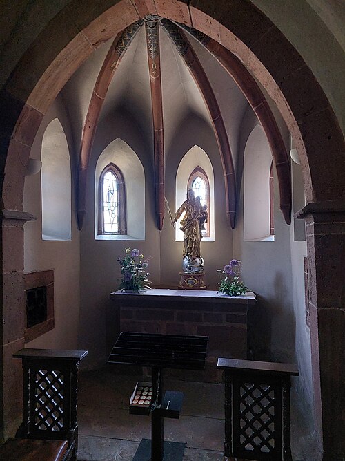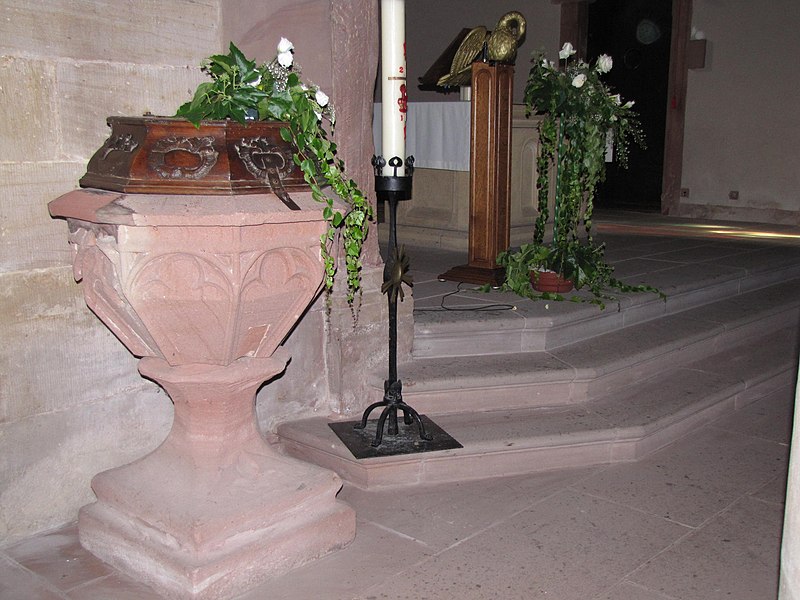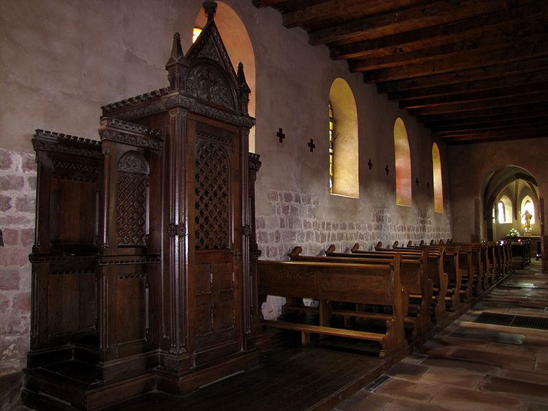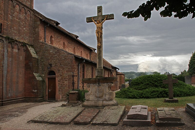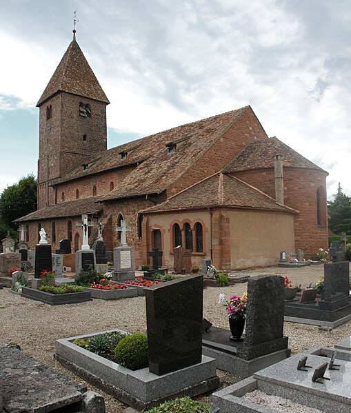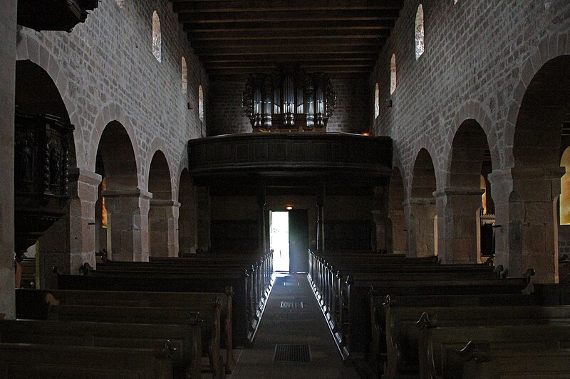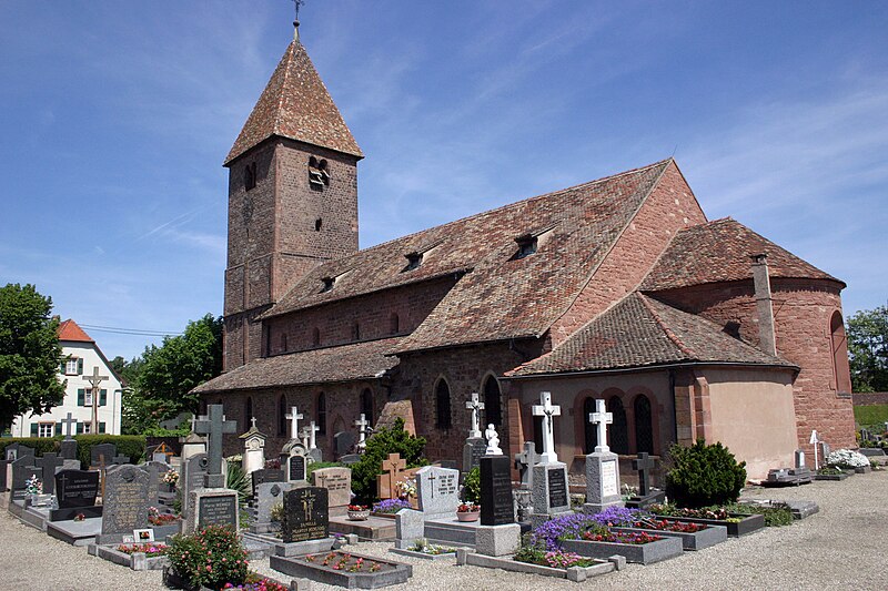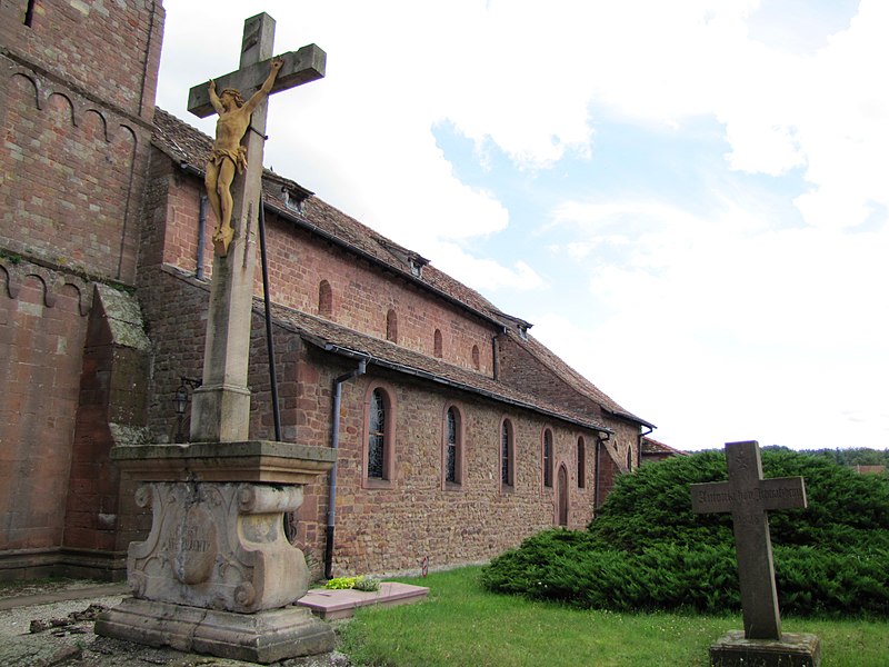 L'église Saint-Ulrich se situe rue Principale à Altenstadt, commune associée à Wissembourg dans le Bas‑Rhin. Les parties les plus anciennes de l'édifice, notamment le mur ouest de la nef et le mur oriental du bas‑côté sud, remontent selon la taille de la pierre au milieu du XIe siècle. Les niveaux inférieurs de la tour‑porche datent de la première moitié du XIIe siècle; la surélévation de la nef, les niveaux supérieurs de la tour, le mur nord de la nef et les grandes arcades réalisées au ciseau (« épis de blé ») appartiennent au troisième quart du XIIe siècle. Vers 1220, on ajoute au nord du chœur une chapelle voûtée dotée d'une abside à pans coupés. Après les dommages subis durant la guerre des Paysans, des travaux de restauration sont entrepris après 1528 : la chapelle sud, l'arc la reliant au chœur, la voûte du chœur, ainsi que l'ouverture et le fermeture de certaines portes et fenêtres datent de cette phase. Le portail occidental, qui proviendrait de la collégiale Saint‑Étienne de Wissembourg détruite en 1525, aurait été installé à Altenstadt à cette époque. Au début du XVIIIe siècle l'église, alors en mauvais état, est rénovée et consacrée en 1719 avec quatre autels; la double arcade sur colonne séparant la chapelle nord du chœur, marquée par les marques de tâcherons A et H, remonte à ces travaux. Les fenêtres des bas‑côtés ont été percées vers 1860, tandis que l'abside du chœur, l'absidiole de la chapelle sud et la nouvelle sacristie datent des travaux de 1878–1879 menés d'après des projets de Ch. Winkler ; ces travaux comprennent également la reconstruction de l'arc triomphal et des contreforts de la tour. Les fondations et les étages de la tour ont ensuite été renforcés entre 1903 et 1906 selon des projets d'A. Sautier. Lors de la restauration de 1955–1958, quatre fenêtres du vaisseau central retrouvèrent leur dimension primitive et la flèche à quatre pans de la tour fut rétablie. Classée au titre des monuments historiques depuis 1898, l'église présente un plan basilical romain : trois nefs charpentées et une tour‑porche datent du XIIe siècle, tandis que les trois absides du chœur appartiennent à des époques différentes, l'absidiole nord étant gothique et les autres datées du XIXe siècle. La nef romane comprend cinq travées ouvertes sur les bas‑côtés par des arcs en plein cintre reposant sur des piliers en pierre de taille qui, initialement carrés, ont vu leurs angles abattus pour former une section octogonale. On note enfin un linteau sculpté de sept médaillons représentant la main de Dieu au centre, des agneaux, des motifs végétaux et des formes géométriques, portant l'inscription J+HOC QUI COENOBIUM CUPITIS TRANSIRE DECORUM POSITE SUPREMAM ABBATIS VENIAM LIUTHAR(DI) SUBERAM.