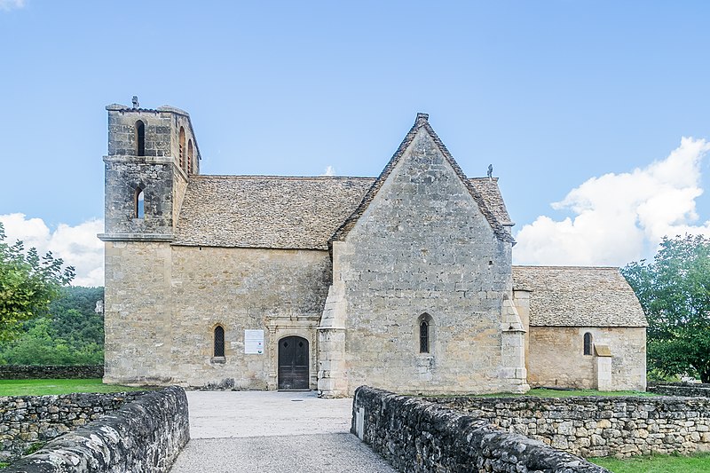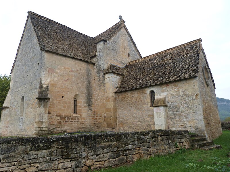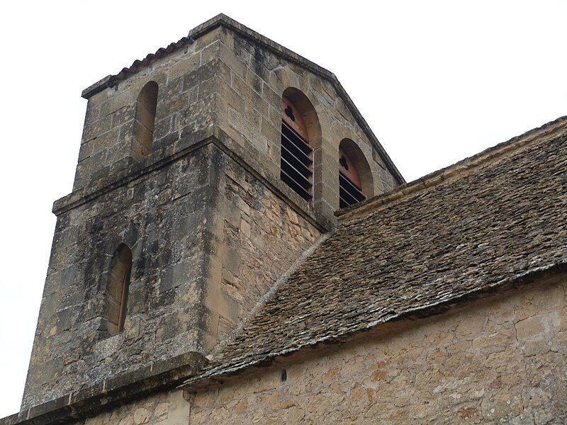 L'édifice résulte de trois phases de construction : le chœur du XIIe siècle, la nef et les deux chapelles du XIVe siècle, et un clocher moderne. Le chœur, plus bas que la nef, s'ouvre sur celle-ci par un arc triomphal. Le portail, situé sur la face sud, est traité sous un arc en anse de panier et encadré par deux pilastres ornés de macles, qui portent un entablement sans décor. Le clocher moderne a été remonté sur la façade ouest. Les toitures du chœur, des chapelles et d'une partie de la nef sont en lauzes, le reste étant couvert en ardoise.