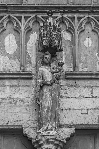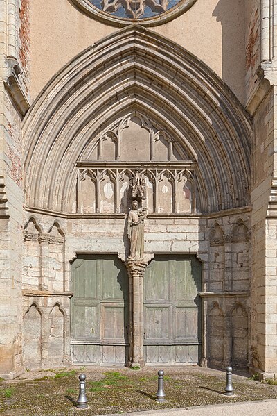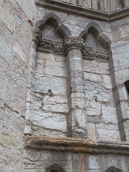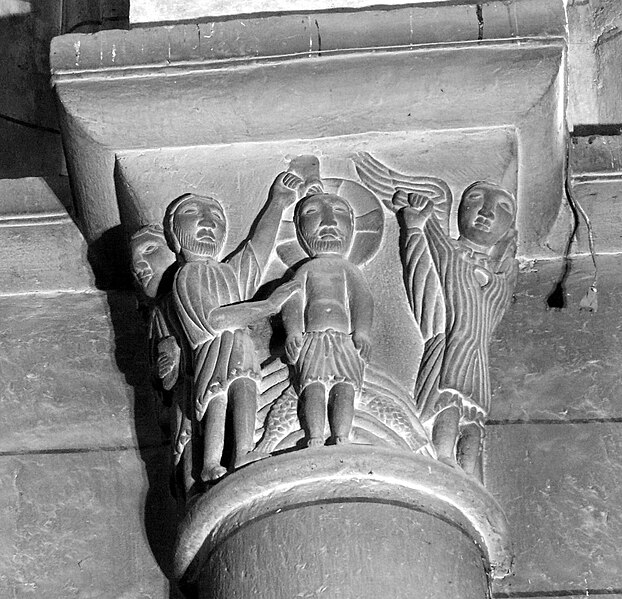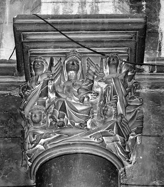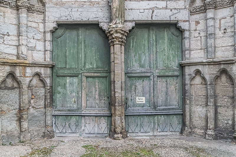 La sculpture de l’église révèle des productions diverses : dans le collatéral sud deux groupes de chapiteaux se distinguent, l’un historié — Vierge à l’Enfant, Adam et Ève, Baptême du Christ, Crucifixion —, l’autre ornemental avec feuillages stylisés, tandis que certaines pièces traduisent l’intervention d’un autre atelier par des traitements différents. Dans le collatéral nord, les chapiteaux adoptent un vocabulaire résolument gothique avec des feuillages naturalistes (figuier, chêne, vigne) ; on y relève un chapiteau à vigne semée de grappes et, sur la colonne en culot à l’entrée nord du chœur, un chapiteau historié représentant la Vierge de la Chandeleur, entourée d’anges et accompagnée de figures qui pourraient renvoyer à des donateurs. Aujourd’hui l’église est fermée au public pour des raisons de sécurité et reste accessible uniquement par la façade ouest, l’ampleur des désordres impliquant la poursuite d’opérations de consolidation et la restitution future de la crypte.