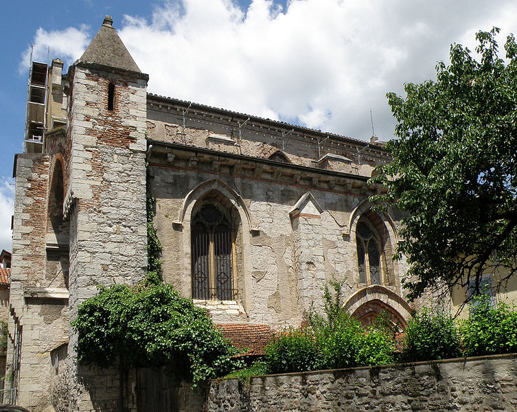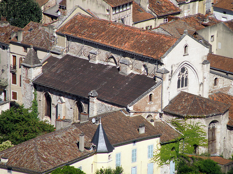 L’église dépendait anciennement de l’évêché puis, en 1188, fut acquise par l’abbaye de Marcilhac, qui aurait fait édifier l’édifice actuel sur l’emplacement d’une première église; certaines hypothèses anciennes évoquent une destruction de l’édifice antérieur sous Théodebert, mais ces interprétations restent incertaines. La régularité du plan suggère un projet global, mais des disparités stylistiques signalent plusieurs phases de chantier : le bas-côté sud et le choeur paraissent avoir été traités en premier, le bas-côté nord, légèrement plus récent, montre par le style de ses chapiteaux gothiques une datation probable au milieu du XIIIe siècle, tandis que la première travée et la façade semblent avoir été ajoutées dans un troisième temps, peut‑être au moment de l’achèvement des voûtes centrales. À la fin du XIIIe siècle ou au début du siècle suivant, le trumeau du portail fut remplacé selon un modèle inspiré de la cathédrale et des coursières furent établies alors qu’on renonçait à achever le choeur polygonal; les deux chapelles latérales nord datent de la fin du XVe ou du début du XVIe siècle.