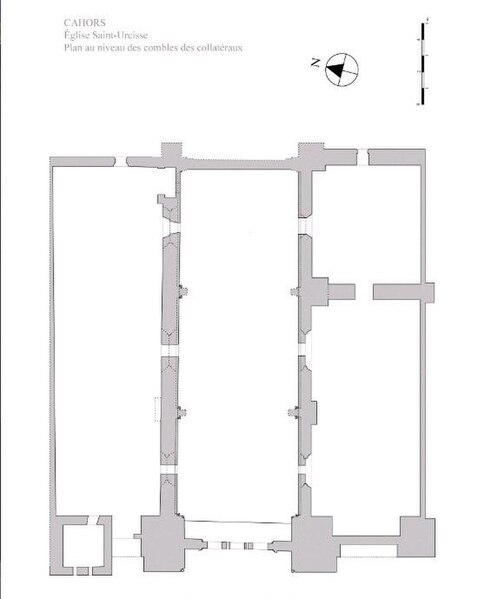 L’église paroissiale Saint-Urcisse de Cahors, située près des rives du Lot, est un édifice majeur illustrant la transition de l’art roman à l’art gothique en Quercy. Inscrite à l’Inventaire supplémentaire des Monuments historiques en 1926 et classée en totalité en 1988, elle possède plusieurs objets inventoriés dans la base Palissy. L’édifice, déjà mentionné au VIIe siècle sous la dédicace conjointe de saint Saturnin et de saint Urcisse, présente aujourd’hui une nef à trois travées flanquée de collatéraux et prolongée par une abside à trois pans; la nef voûtée d’ogives est soutenue par quatre gros piliers carrés romans ornés de chapiteaux historiés. L’église a autrefois comporté une crypte d’origine ancienne dont la voûte s’est effondrée lors de la grande inondation de 1927 et qui a été en grande partie comblée. Le portail gothique occidental, surmonté d’une rose, constitue l’accès principal ; d’anciens portails du bas-côté sud sont aujourd’hui bouchés et deux tourelles sont adossées à la façade. Le mur pignon avait été prolongé au XIXe siècle par un clocher-mur dont le surpoids et la dégradation des maçonneries ont provoqué la déstabilisation de l’édifice ; ce clocher a été démoli en 1968.