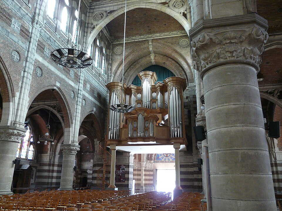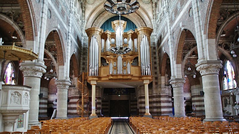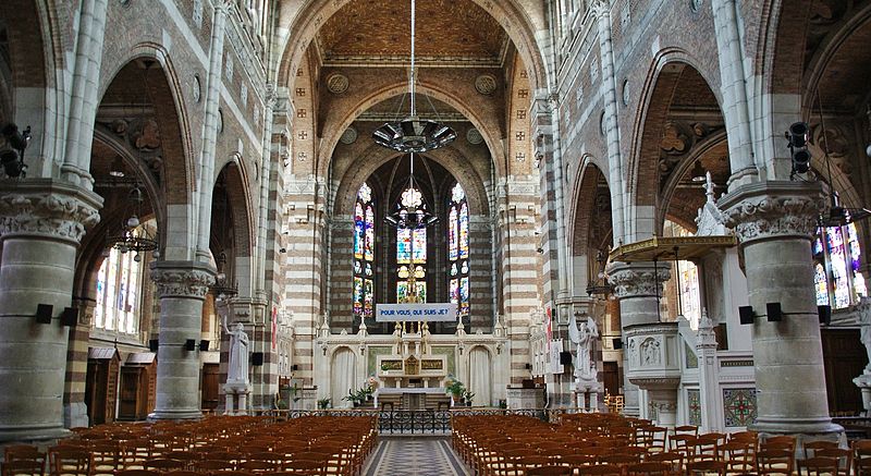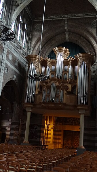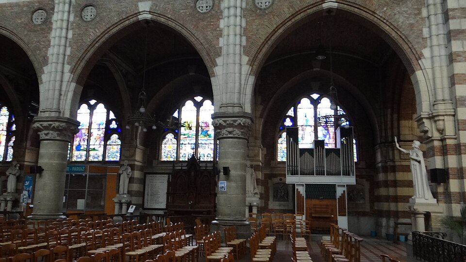 L'orgue de l'église a connu plusieurs générations d'instruments : l'orgue Merklin de 1888 fut détruit pendant la guerre, puis les établissements Krischer fournissent, entre 1926 et 1930, un grand orgue et un orgue de chœur pneumatiques. Après la défaillance de ces instruments, la paroisse commande en 1974 un orgue de chœur mécanique à René Godefroy, et un nouvel orgue est ajouté en 2001. Le clocher abrite une sonnerie de quatre cloches de volée fondues en 1927 par Charles Wauthy, fondeur à Douai (Sin-le-Noble) ; elles furent baptisées le 20 mars 1927 et portent les noms et caractéristiques suivants : Ghislaine-Louise (do 3, 1 900 kg), Marthe-Julia (fa 3, 780 kg), Henriette-Magdeleine (sol 3, 550 kg) et Marie-Élisabeth-Monique (la 3, 390 kg).
