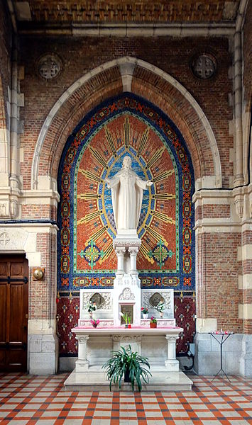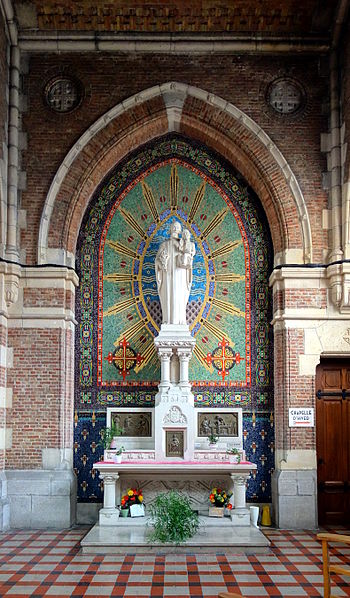Le chœur accueille deux statues en pierre de Sainte Jeanne d'Arc et de Saint Michel, œuvres de Maxime Real del Sarte, et la pietà près de l'entrée est une reproduction signée Barbedienne. Le long des bas-côtés se trouvent des statues en pierre représentant notamment Saint François d'Assise, Saint Antoine et le Curé d'Ars, attribuées à l'atelier Lefèbvre-Lenclos. La statue de Saint-Christophe et les stations du chemin de croix proviennent de la manufacture de l'Union Internationale Artistique de Vaucouleurs ; ces pièces ont parfois été attribuées, à tort, à Lefèbvre-Lenclos, qui a pu toutefois intervenir comme fournisseur. La statue de Saint-Vaast est une œuvre en pierre de Jules Déchin ; le groupe de Notre-Dame du Rosaire est une terre cuite de la Sainterie de Vendeuvre, et le groupe de Notre-Dame de la Salette provient de la Statue Religieuse de Paris (Maison Raffl).
