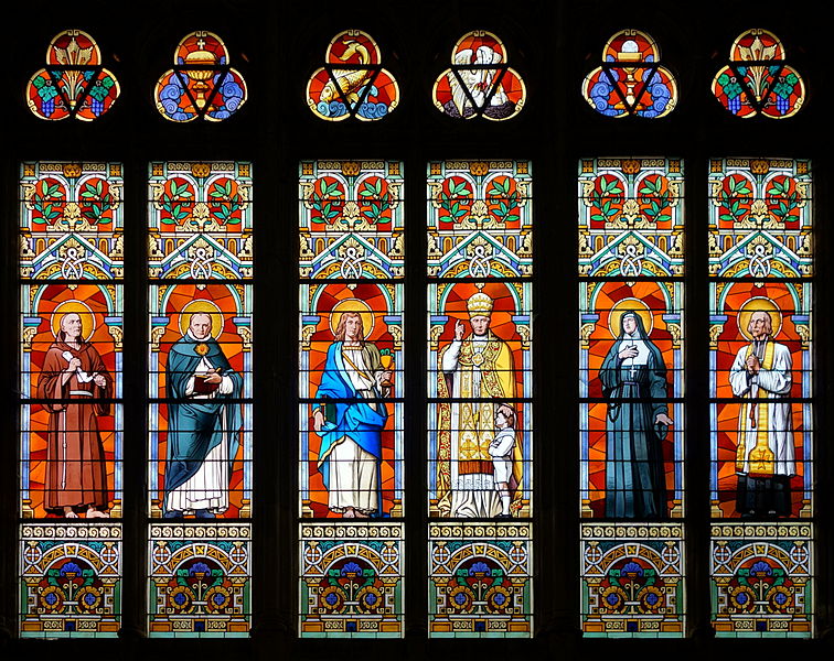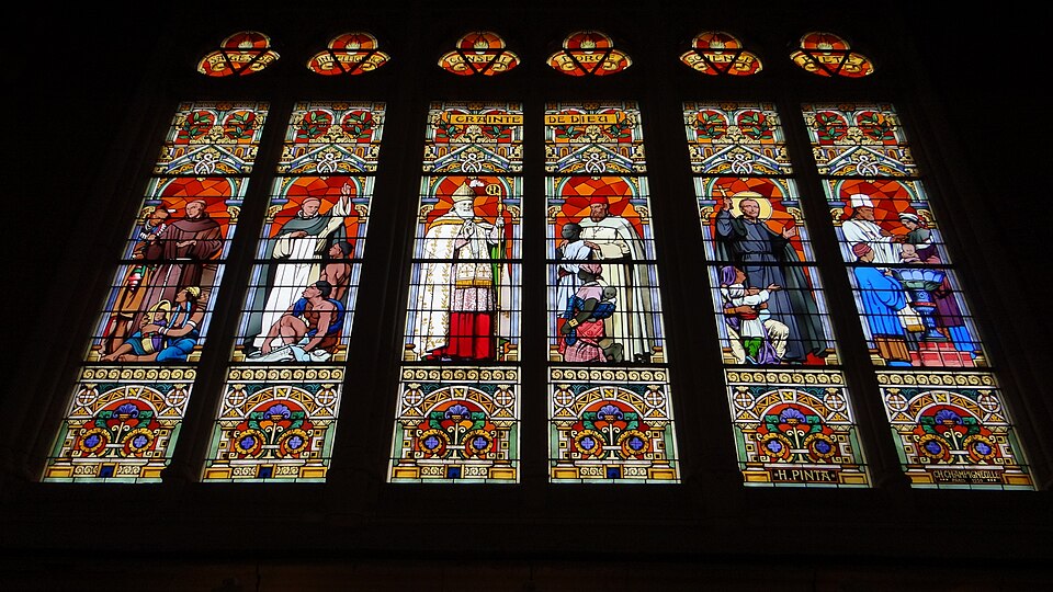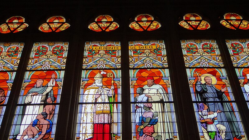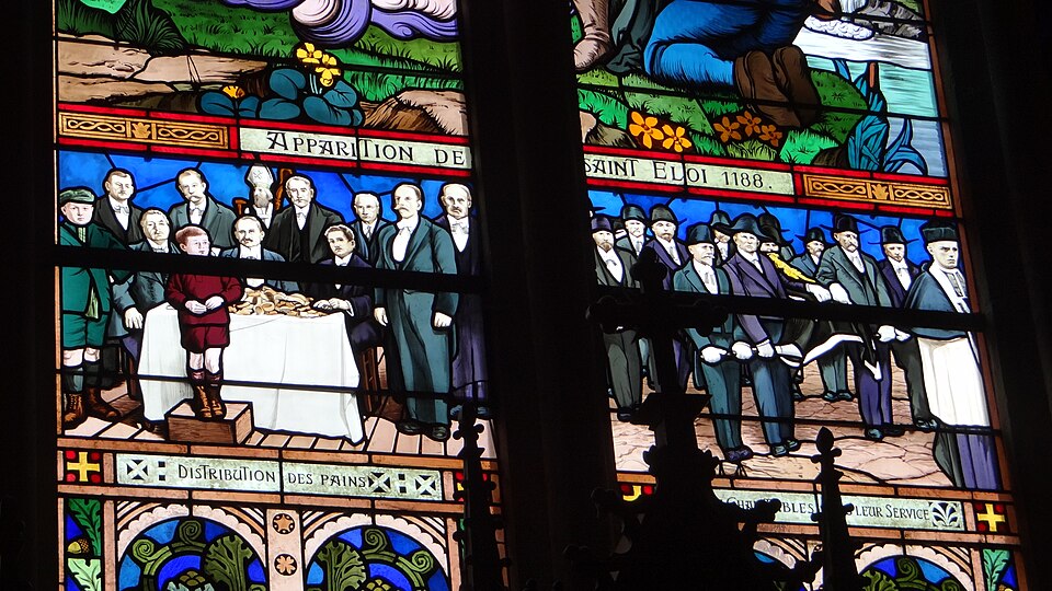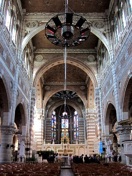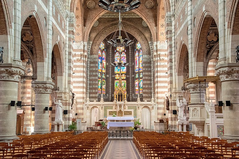 Les vitraux, réalisés par l'atelier du maître verrier Charles Champigneulle et le peintre Henri Pinta, retracent l'histoire de la cité et évoquent la vie de saint Vaast. Le mobilier en bois — stalles, fauteuil du célébrant, sièges d'acolytes et confessionnaux — est l'œuvre de l'atelier Lefèbvre-Lenclos, tandis que les éléments en pierre tels que le maître-autel et son retable, la chaire (probablement) et les cloisons du chœur proviennent des établissements Buisine, dirigés par Édouard Buisine.