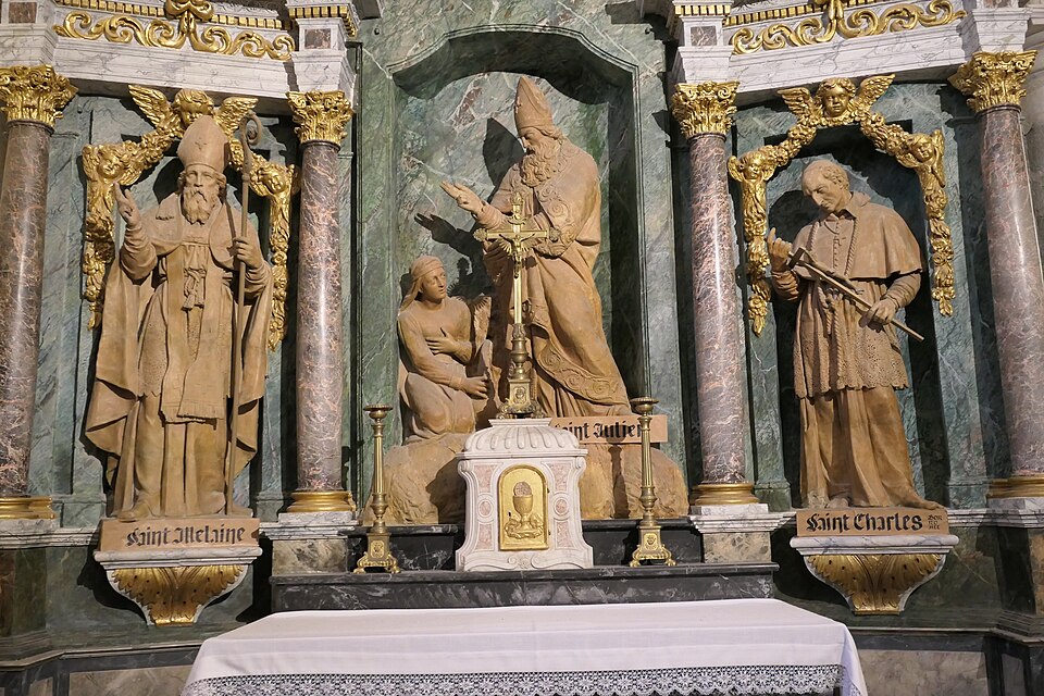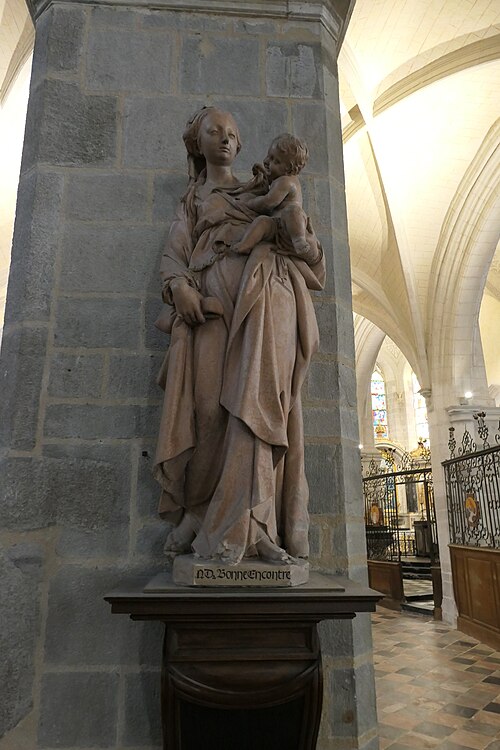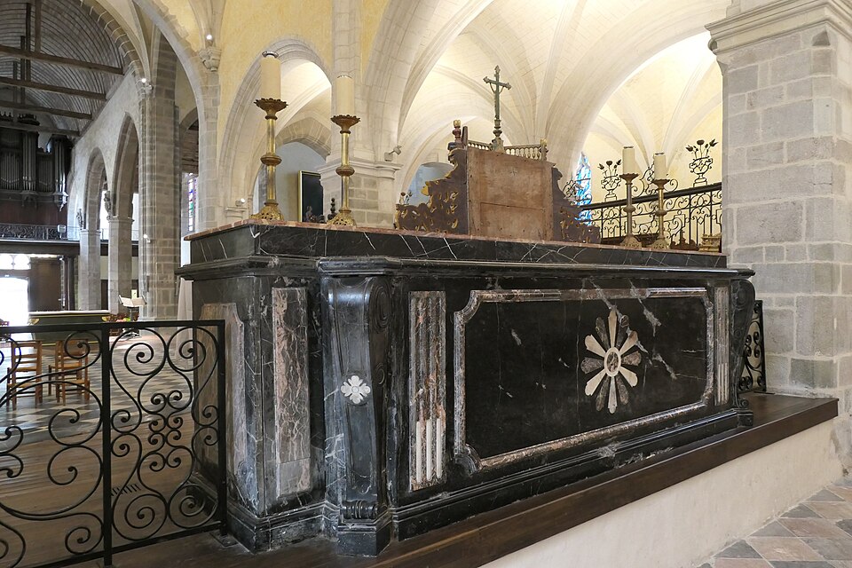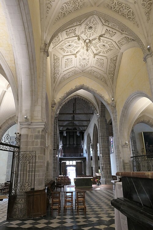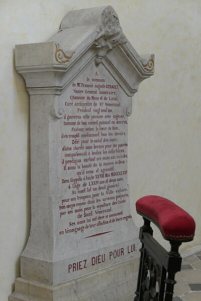 L'église Saint-Vénérand, située à Laval (Mayenne), est un édifice paroissial riche d'une longue histoire et d'une architecture composite. On lui attribue parfois une origine à la fin du XIVe siècle ; elle comprend un vaste chœur à cinq nefs prolongé par une abside centrale. L'absence d'un lieu de culte proche incita les habitants du faubourg du Pont-de-Mayenne à entreprendre sa construction ; la première pierre fut posée le 16 mai 1485 par le comte de Montfort (futur Guy XV). Dès 1490 on y déposa des reliques de saint Vénérand, reçues auparavant de l'abbaye de Conches, donation dont la remise avait eu lieu le 15 mai 1480. Vers 1500 la fine flèche en ardoise du clocher, œuvre du charpentier Jean Bodin, fut élevée. À partir de 1522, des travaux d'agrandissement affectèrent la nef, le transept et le chœur; les voûtes du chœur portent la date de 1565. La nef fut allongée d'une travée en réutilisant la partie inférieure d'une ancienne façade de style Louis XII ; la partie supérieure du porche et la tourelle d'escalier, attribuées au maître maçon Jamet Nepveu, furent achevées en 1594 dans un style Renaissance. Le portail, œuvre commencée vers 1523 et terminée en 1594, constitue la partie la plus décorée de l'édifice : il associe motifs ogivaux et éléments de la Renaissance, dais, clochetons et une riche ornementation sculptée, tandis qu'une tourelle-abri d'escalier porte la date de 1556. Aux XVIIe et XVIIIe siècles l'église connut de nouvelles extensions et aménagements : agrandissement du bras droit du transept vers 1602, chapelles ajoutées à l'ouest en 1642 et à l'est en 1690, allongement du bras gauche du transept par François Langlois entre 1690 et 1697, puis une chapelle supplémentaire réalisée en 1705. De nombreux autels, retables et ornements furent successivement financés par des donateurs locaux, tandis que la confrérie du Saint-Sacrement et d'autres associations paroissiales animèrent la vie religieuse. Le chevet et les voûtements furent progressivement achevés au cours du XVIe siècle ; l'abside porte l'inscription de 1565 attestant l'achèvement des voûtes. Au XIXe siècle des voûtes de briques remplacèrent le voûtement d'origine dans la nef et le transept (1853–1854), l'architecte Eugène Boret fit ajouter deux bas-côtés en 1870 et Louis Garnier procéda à la restauration de la façade en 1891 ; ces aménagements du XIXe siècle ont été partiellement détruits lors des campagnes de restauration entreprises de 1987 à 2006. L'église a conservé sept retables, dont un du XIXe siècle et quatre datés du XVIIIe ; certains retables anciens, notamment le maître-autel attribué à Tugal Caris, ont été vendus ou déplacés au XIXe siècle. Les vitraux ont longtemps orné l'ensemble : deux verrières du XVIe siècle subsistent dans les transepts — La Crucifixion, attribuée à Raoul de Nimègues, et La Vie de Moïse, attribuée à Simon de Heemsce — restaurées en 1897, 1953 et 1995; en 2005 Michel Soutra a réalisé des panneaux contemporains accompagnant ces œuvres et a créé quatre verrières pour le chœur en remplacement de verres du XIXe siècle. L'édifice présente, dans son plan et ses proportions, une grande régularité : nef principale, bas-côtés, transepts et collatéraux formant déambulatoire, avec deux chapelles en arrière et un chevet en abside. Conservatrice d'une riche histoire paroissiale, l'église témoigne aussi par ses inscriptions, dalles funéraires et objets liturgiques de la vitalité des dévotions et des fondations locales aux XVIe–XVIIIe siècles.