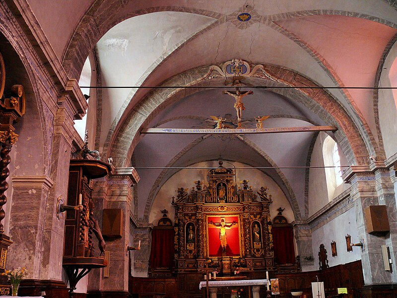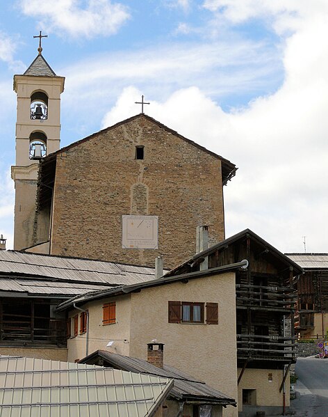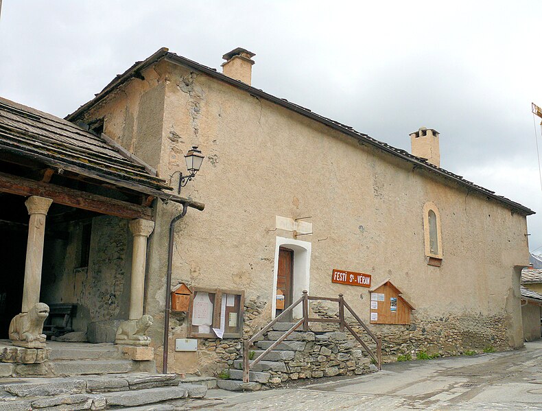 L'église paroissiale Saint-Véran, située dans la commune de Saint-Véran (Hautes-Alpes), est attestée dès le XIIIe siècle. Les parties les plus anciennes de l'édifice actuel — notamment le porche et les colonnes de la tribune — datent toutefois de la fin du XVe siècle ou du début du XVIe siècle ; le porche a été remonté récemment à partir d'éléments anciens. Détruite pendant les guerres de Religion, l'église a été reconstruite au XVIIe siècle en forme de temple par un architecte protestant ; la reconstruction initiale se fit sans abside ni clocher et la nef était alors couverte d'un plafond en planches. La voûte de la nef et le clocher actuels ont été édifiés entre 1835 et 1838. Un cadran solaire a été peint vers 1970. L'édifice est inscrit au titre des Monuments historiques depuis le 8 mai 1973. Le porche d'entrée est soutenu par deux colonnes finement sculptées reposant sur des lions porte-colonnes, motifs également visibles à Guillestre et Abriès. À l'intérieur subsistent plusieurs colonnes, chapiteaux et un bénitier anciens. L'église s'organise autour d'une nef de trois travées et d'un chœur et conserve un mobilier baroque notable, dont un retable de 1684 sculpté par des artistes italiens et encadrant un Christ en croix. On y trouve également des vitraux du XIXe siècle, une tribune, de nombreux autels et statues en bois représentant notamment saint Véran, saint Joseph, le curé d'Ars, saint François et la Vierge. Selon la tradition, le vocable de l'église vient de saint Véran, patron de Cavaillon, qui aurait chassé un dragon dont un os serait conservé dans l'édifice. Le cimetière est implanté au sud de l'église et domine la vallée.