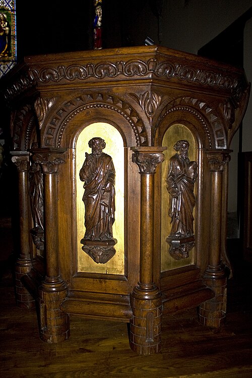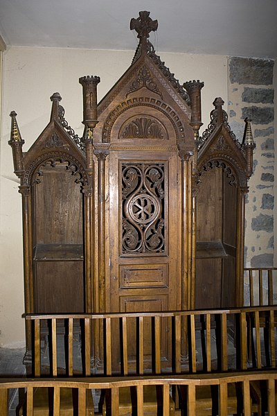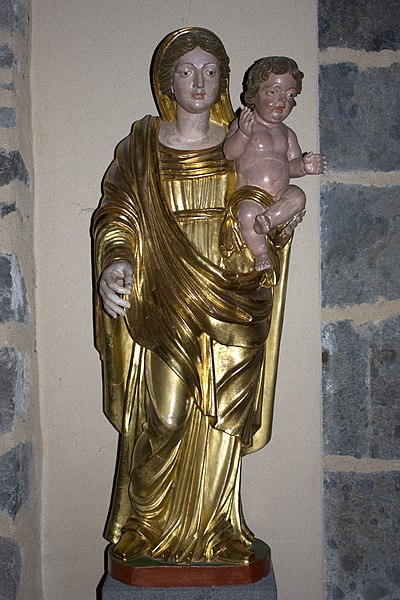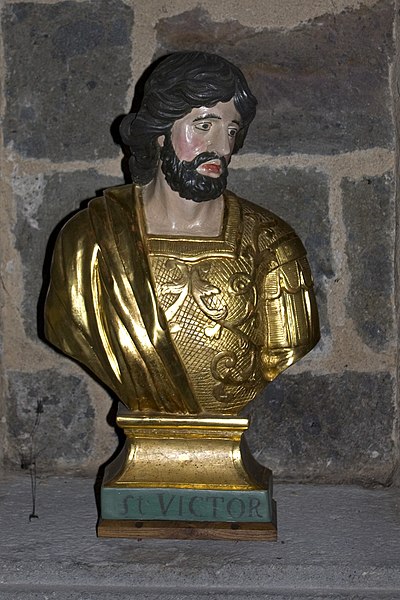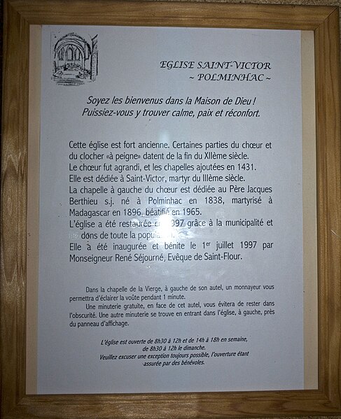 L'église Saint-Victor de Polminhac (Cantal, Auvergne-Rhône-Alpes) est d'origine romane. Selon Rochemonteix, ses parties les plus anciennes sont le chœur et le clocher, qui remontent à la fin du XIIe ou au début du XIIIe siècle. Le chevet a été surélevé pour permettre la voûte du chœur en ogives ; la clé de voûte de l'abside porte une date inscrite, indiquée dans les sources comme 1421 ou 1431. À cette campagne de réaménagement, des contreforts ont été ajoutés aux angles et les baies rallongées pour améliorer l'éclairage du sanctuaire. Six chapelles latérales ont été ajoutées aux XVe et XVIe siècles, tandis que la façade occidentale a été reprise sur environ deux tiers de sa hauteur à la fin du XVIe siècle. Des travaux d'entretien et des aménagements intérieurs se sont poursuivis jusqu'au XVIIIe siècle. Au XIXe siècle, la sacristie adossée au nord du chœur a été agrandie (projet de 1844), l'intérieur a été orné de décors peints au pochoir et des vitraux ont été installés. Au XXe siècle, certains vitraux ont été complétés par des créations du maître-verrier Borie du Puy. Sur la base du projet de l'architecte départemental Pierre Terrisse de 1943, une réfection des toitures et un ravalement des façades ont été réalisés en 1952. Dans les années 1960, une tribune en maçonnerie a été installée et les parois intérieures ont été revêtues d'un mélange de pierre apparente et de crépi. Plus récemment, un vitrail a été posé dans la troisième chapelle nord, dédiée à la vie de Saint-Jacques de Berthieu, natif de Polminhac. Ce vitrail se compose de quatre scènes superposées représentant, de bas en haut, la maison natale (27 novembre 1838), son départ en mission pour Madagascar (10 décembre 1875), son massacre (8 juin 1896) et sa béatification par le pape Paul VI (17 octobre 1965). L'église est inscrite au titre des monuments historiques par arrêté du 13 septembre 2019, et sa façade occidentale et son chevet le sont depuis l'arrêté du 1er juin 1927. Construite en tuf volcanique et en brèche andésitique, son architecture comprend une façade ouest ornée d'un portail et surmontée d'un clocher-mur à quatre ouïes. La nef, à vaisseau unique, est bordée de six chapelles latérales et couverte d'une voûte en plâtre ; le chœur à chevet polygonal est voûté d'ogives. À l'intérieur, les chapelles présentent des voûtes en berceau et en ogives, et des modillons sculptés décorent les corniches.