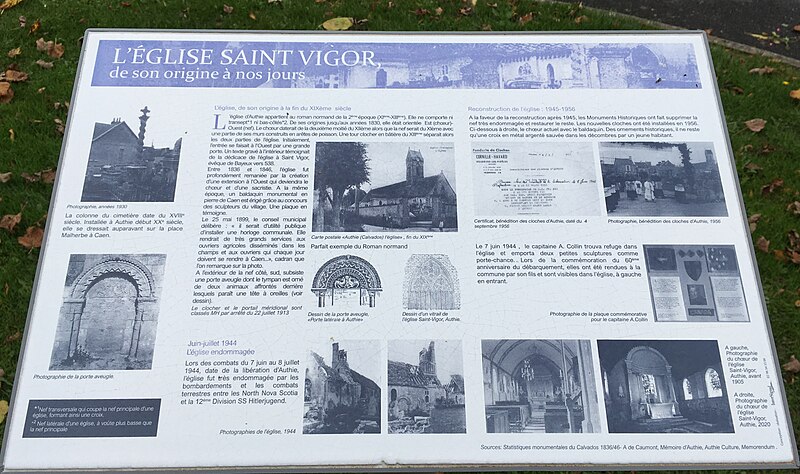 L'église Saint-Vigor est une église catholique située dans le bourg d'Authie, dans le département du Calvados. Elle est dédiée à Vigor de Bayeux, évêque de Bayeux de 513 à 537. Le clocher en bâtière et le portail méridional ont été classés au titre des monuments historiques le 22 juillet 1913, et la croix du cimetière est inscrite depuis le 18 mars 1927. La croix, datée du XVIIIe siècle, se présente sous la forme d'une colonne torsée en pierre surmontée d'une croix à laquelle manque la branche supérieure. Sont également signalés dans la description architecturale le portail sud-ouest dit « méridional », la nef et le chœur de l'église. Pour compléter cette fiche, on peut consulter la notice d'Arcisse de Caumont, Statistique monumentale du Calvados (t. 1, p. 281-283), ainsi que les ressources des portails consacrés aux monuments historiques, au Calvados et à l'architecture chrétienne. Des illustrations et documents complémentaires sont disponibles sur Wikimedia Commons sous la rubrique Église Saint-Vigor d'Authie.