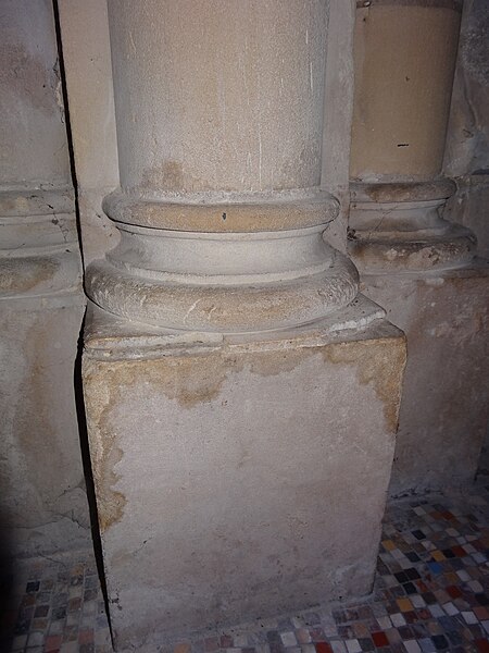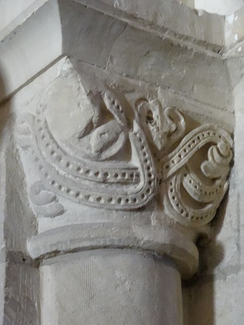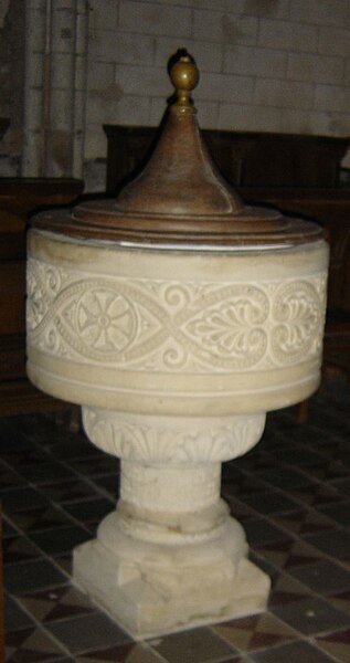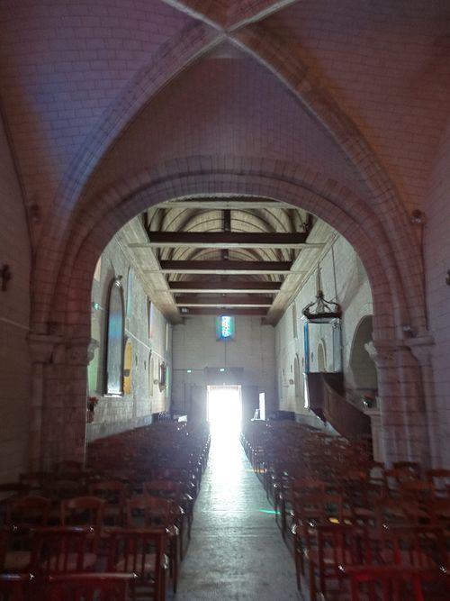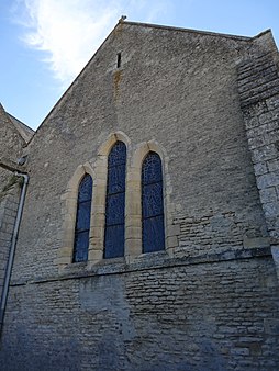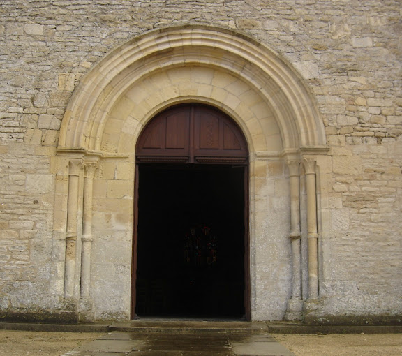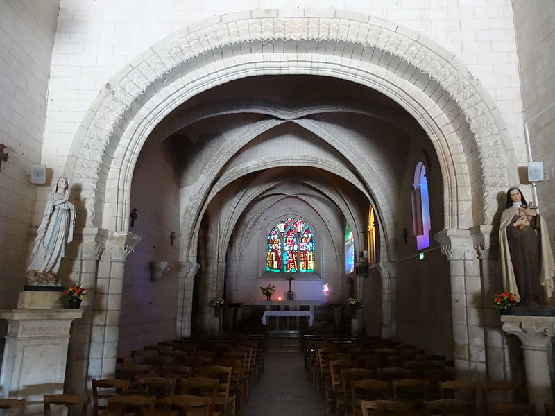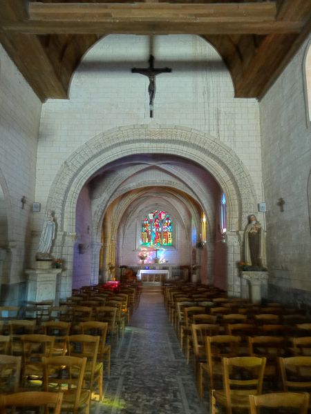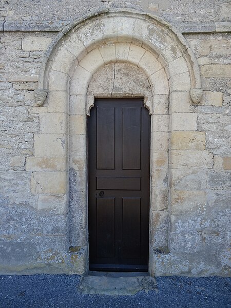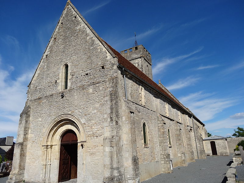 La porte d'entrée occidentale, en plein cintre mais attribuée au XIIIe siècle par Arcisse de Caumont, présente de fines colonnes annelées presque détachées du mur, des fûts partagés par un anneau et des chapiteaux décorés de crochets élancés, tandis qu'une petite ouverture la surmonte. La nef romane, érigée aux XIe ou XIIe siècles, compte quatre travées; elle n'a jamais été voûtée et ses baies originelles, étroites, avaient des arcs légèrement brisés; au XXe siècle les baies supérieures ont été replacées entre les contreforts et les grandes fenêtres du premier niveau sont alignées. À l'intérieur la quatrième travée s'ouvre au nord par une arcade en plein cintre sur un espace contenant un autel, relié par un couloir à la chapelle Notre-Dame qui donne accès à la porte du clocher. Une petite porte romane du mur sud, aux archivoltes ornées d'étoiles et de bâtons brisés formant des losanges, a disparu et a été remplacée par une fenêtre.