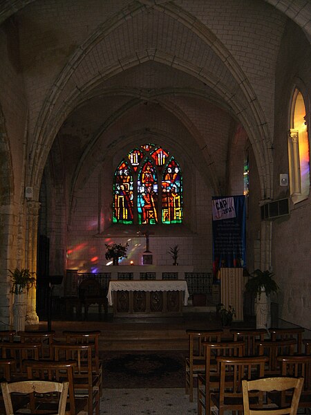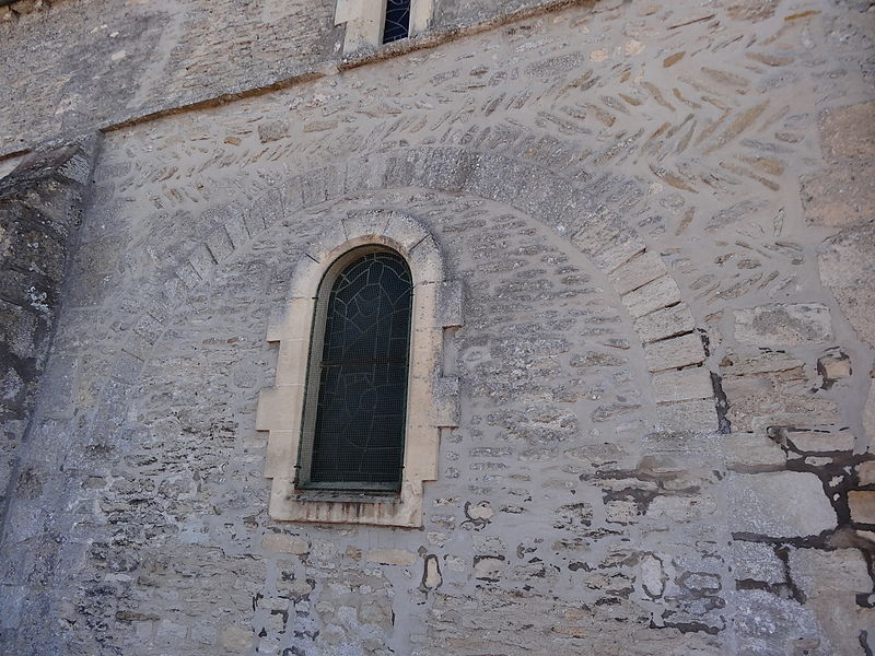 L'église a conservé quelques voûtes en plein cintre qui témoignent de ses origines romanes, mais elle a été remaniée à plusieurs reprises. Certaines parties datent des XIIIe et XVe siècles et, au XXe siècle, toutes les fenêtres ont été déplacées ou agrandies pour apporter plus de lumière. L'édifice se compose principalement d'une nef couverte de tuiles, d'un chœur flanqué au nord d'une chapelle, de toits d'ardoise et d'une tour carrée crénelée située côté nord près de la chapelle. Sur les murs latéraux de la nef subsistent les traces de quatre grandes arcades en plein cintre, aujourd'hui murées, qui ouvraient sur des bas-côtés disparus, et un cordon marque la séparation des deux niveaux ; au-dessus, notamment dans le mur nord, figurent des pierres disposées en arête-de-poisson. Les murs sont soutenus par des contreforts solides; une croix antéfixe romane orne le pignon central et quelques modillons sculptés subsistent sur le mur méridional du chœur.