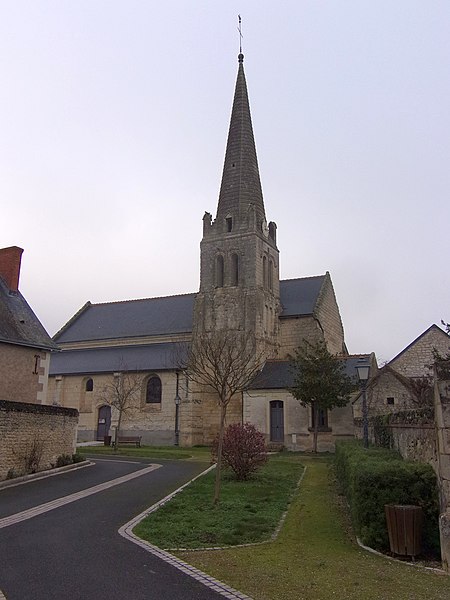 L'église paroissiale Saint-Vincent conserve un vestige de l'édifice primitif du XIe siècle : la façade occidentale, parementée en petit appareil. Au XIIe siècle, elle appartenait à l'abbaye de Marmoutier. Un chœur à chevet plat a été édifié au cours du deuxième quart du XIIIe siècle (datation par travaux historiques). Le clocher, qui flanque l'église au sud, remonte au XIIIe siècle ; il a été surélevé à une date postérieure — certaines sources situent cette transformation au XVe siècle, entraînant la fermeture des baies primitives de la chambre des cloches, tandis que d'autres l'attribuent au XVIe siècle et mentionnent un étage ajouré de deux baies sur chaque face. La flèche qui couronne le clocher a été refaite dans la première moitié du XIXe siècle et la base du clocher restaurée en 1959 ; elle est également décrite comme moderne dans une autre source. La nef a été refaite et élargie au XVIe siècle par l'adjonction de deux collatéraux voûtés d'ogives encadrant le vaisseau central. La voûte de la nef a été refaite en 1856 par l'architecte Guérin, qui a installé une fausse voûte lambrissée en berceau brisé sur le vaisseau central. Le chœur est couvert de voûtes angevines ornées de statuettes. Une chapelle seigneuriale, jouxtant le chœur au nord, a été construite au XVIe siècle. La clé de l'arc formeret, adossée au mur fermant le collatéral nord, porte la date 1619.