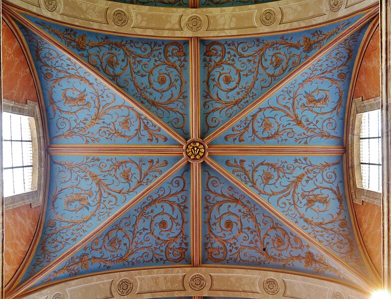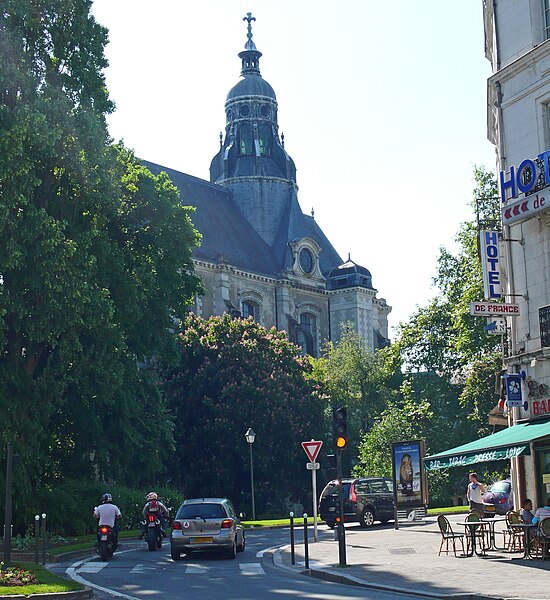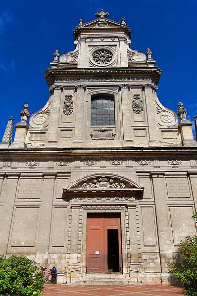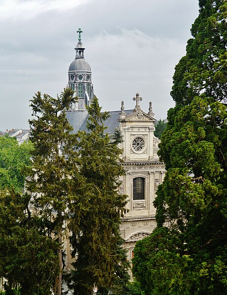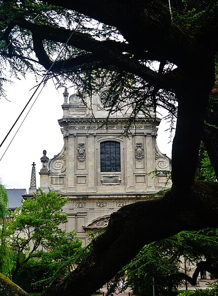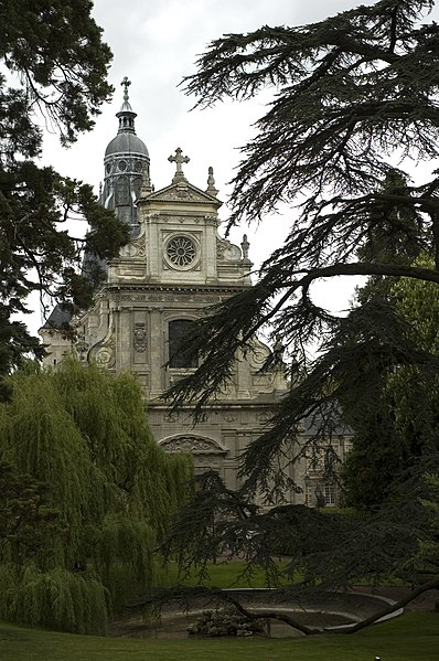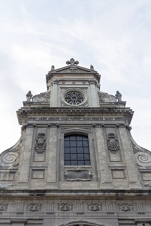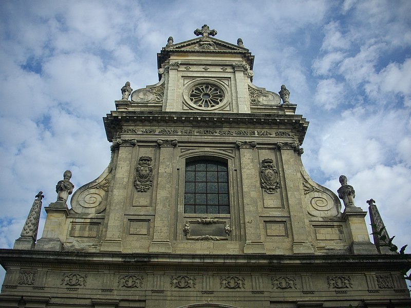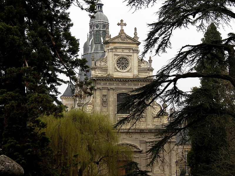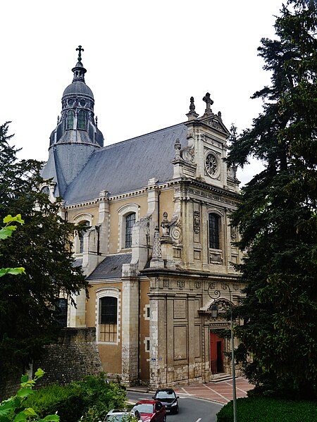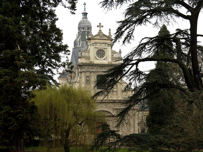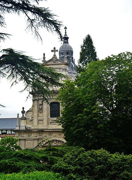 L'église Saint-Vincent-de-Paul, anciennement chapelle Saint-Louis du collège des Jésuites, se situe à Blois (Loir-et-Cher). La fondation d'un premier collège remonte à 1581 ; les jésuites prennent la direction de l'établissement au début des années 1620 et acquièrent les terrains destinés à la construction de la chapelle dans les années 1620. La construction de l'église fut marquée par de longues interruptions : certains documents indiquent un début des travaux en 1626, d'autres situent une reprise décisive en 1634. Les plans sont attribués par certains à François Mansard, tandis que des dessins conservés à Quimper laissent penser qu'un architecte jésuite, le père Martilange (Étienne Martellange), a également participé au projet ; Charles Turmel dirigea la reprise des travaux en 1634 et adapta plusieurs éléments du projet initial, notamment l'élévation de la façade, la nef et le plan des chapelles latérales. En 1655, le parti de couvrement évolua : la nef fut recouverte d'un lambris et le dôme fut déplacé d'une travée. La décoration intérieure, particulièrement celle du chœur et de la tribune d'orgue, fut réalisée à partir de 1674 grâce au financement d'Anne‑Marie de Montpensier, qui fit placer dans le chœur un grand retable et deux cénotaphes, dont l'un contient le cœur de Gaston d'Orléans. Jusqu'au XVIIIe siècle l'édifice servit de chapelle au collège ; après l'expulsion des jésuites, les bâtiments du collège furent désaffectés et le parvis transformé en Place Royale. Pendant la Révolution la chapelle fut consacrée Temple de la Liberté, livrée au vandalisme, puis utilisée comme magasin à fourrage, tandis que les bâtiments du collège furent affectés au bureau de bienfaisance. L'édifice redevint un lieu de culte au début du XIXe siècle et fut rendu au culte en 1826‑1827, devenant église paroissiale sous le vocable de Saint‑Vincent‑de‑Paul ; une dénomination de Notre‑Dame‑de‑l'Immaculée‑Conception est encore mentionnée pour 1856 dans certaines sources. Une restauration dirigée par Jules de La Morandière débuta en 1847, modifiant certains détails de façade, reprenant le couvrement de la nef et de la coupole et remaniant la charpente de la lanterne ; à cette période l'église reçut des vitraux de l'atelier Lavergne, dont une verrière subsiste. Dans les années 1880, le grand tableau du retable, disparu pendant la Révolution, fut remplacé par une niche ovale éclairée zénithalement et abritant une statue de l'Immaculée‑Conception. Après 1945 les bâtiments du collège furent largement démolis lors de transformations administratives et postales ; le corps sud subsista mais fut profondément remanié, et deux lucarnes furent déposées au dépôt lapidaire du cimetière Saint‑Saturnin. Classée aux monuments historiques en 1917, l'église présente des dimensions modestes, une façade rythmée par trois ordres classiques superposés et, à l'intérieur, une ordonnance de type dorique. Le chœur, richement décoré, et la tribune d'orgue conservent un décor en stuc imitant le marbre ; la façade porte encore des motifs monarchiques et l'édifice comprend une nef à travées flanquée de chapelles, une abside à pans et divers monuments funéraires liés à la famille de Gaston d'Orléans.