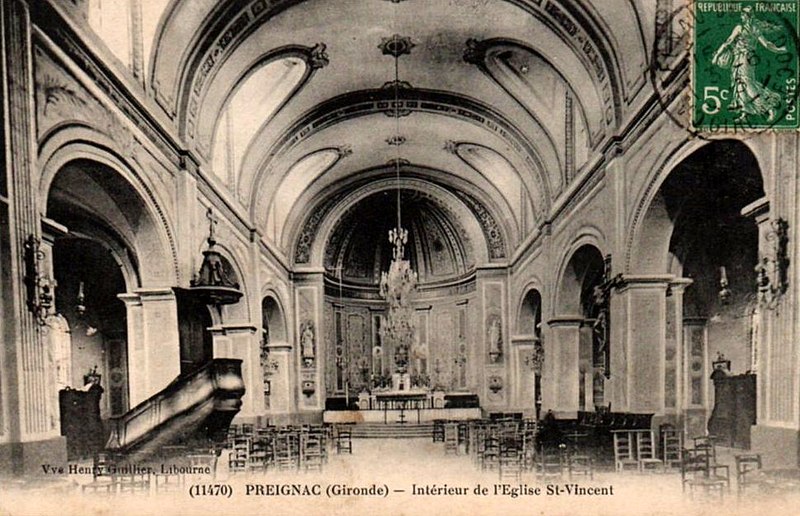 L'église Saint-Vincent est située au cœur du village de Preignac, en Gironde. Sa façade et le clocher en forme de dôme qui la surmonte sont en pierre ; les façades latérales et postérieure sont en maçonnerie de moellon revêtue d'un crépi. Le vaisseau se compose d'une nef principale flanquée de collatéraux, chaque nef se terminant par une abside ; l'ensemble est voûté sur armature en bois et enduit. La façade, caractéristique du XVIIIe siècle, présente deux ordres de pilastres superposés : l'ordre inférieur doriqué et l'ordre supérieur ionique, avec un fronton sur l'avant-corps central. Le clocher, de plan octogonal, est orné à l'étage d'un beffroi de colonnes dégagées d'ordre corinthien qui forment des contreforts à chaque angle ; il est coiffé d'une petite coupole en plomb avec lanternon et pyramide d'amortissement. L'édifice conserve une origine au XIVe siècle mais a été partiellement détruit au début du XVIIIe siècle afin de reconstruire une nef et une façade. Il a été voûté en berceau à la fin du XVIIIe siècle ; la façade, le chevet, les bas-côtés et les contreforts ont été modifiés au début du XIXe siècle. Le cimetière a été détruit et, au milieu du XIXe siècle, le chœur, la façade à pilastres et fronton ainsi que le clocher octogonal ont été reconstruits. Une source mentionne une période de construction de 1770 à 1854 en style néoclassique. L'édifice est inscrit au titre des monuments historiques par arrêté du 24 décembre 1925. L'église abrite un orgue construit en 1864 par Georges Wenner et Jean-Jacob Götty, restauré et agrandi en 1881 par Auguste Commaille puis à nouveau en 2005 par Bernard Cogez ; cet instrument est inscrit à l'inventaire des objets des monuments historiques.