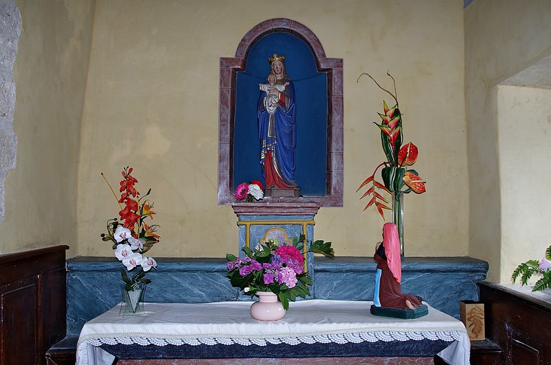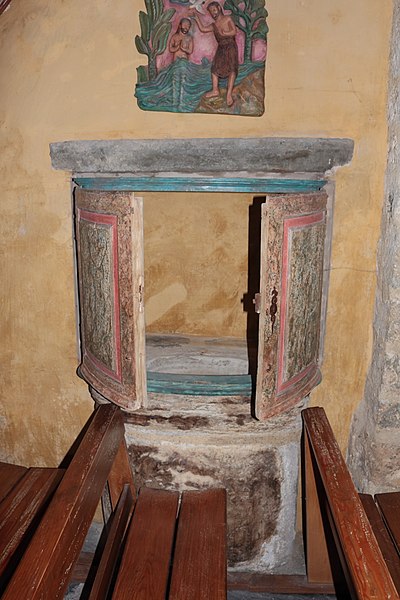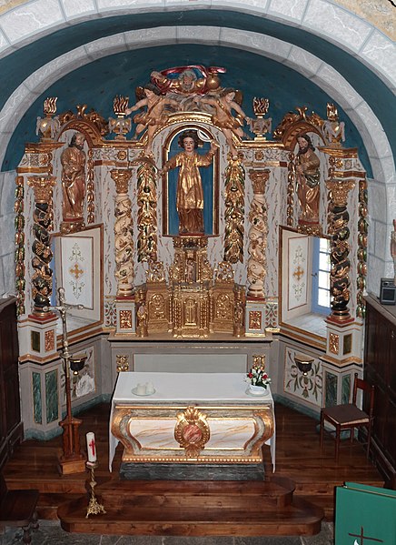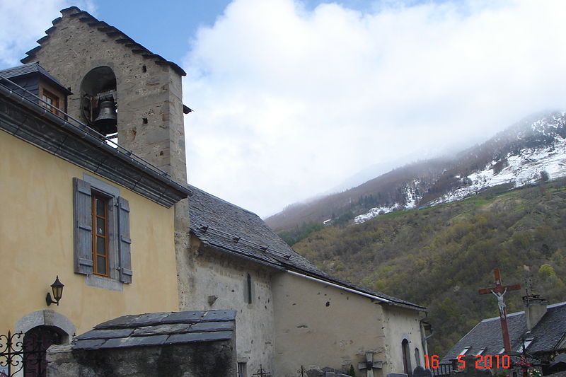 Petit édifice roman en pierre de moyen appareil. La façade occidentale est précédée d'un porche surmonté d'un grand pignon au centre duquel s'ouvrent deux grandes baies romanes servant de beffroi aux cloches. Jusqu'en 1880 environ, la toiture était composée d'énormes dalles posées directement sur les voûtes. La porte d'accès est surmontée d'un tympan orné du monogramme grec du Christ entouré des attributs des évangélistes. Le chevet, voûté en cul-de-four, abrite un autel cubique qui remonte à la construction de l'église ; son extérieur a été modifié à la fin du XIXe siècle. Au milieu de la troisième travée, une arcade de chaque côté ouvre sur deux chapelles modernes élevées dans le style de l'église.
