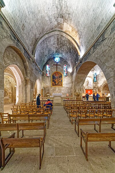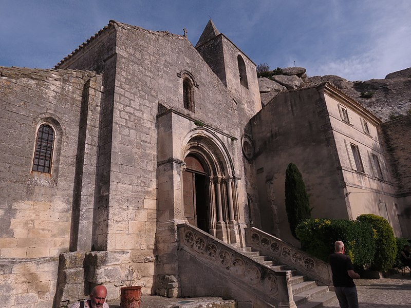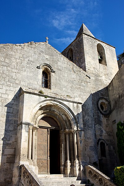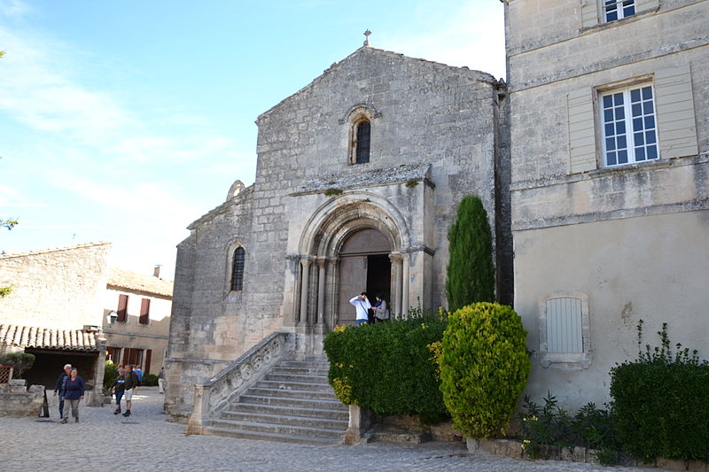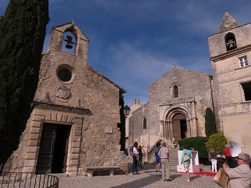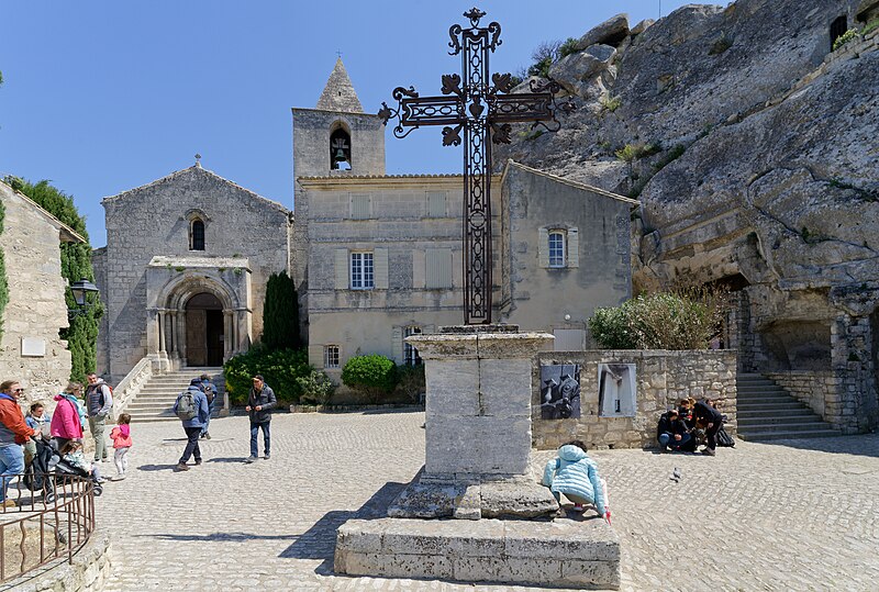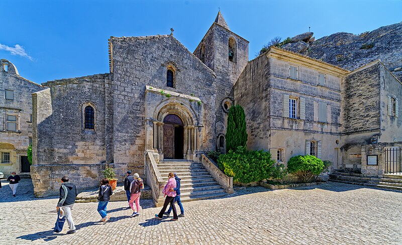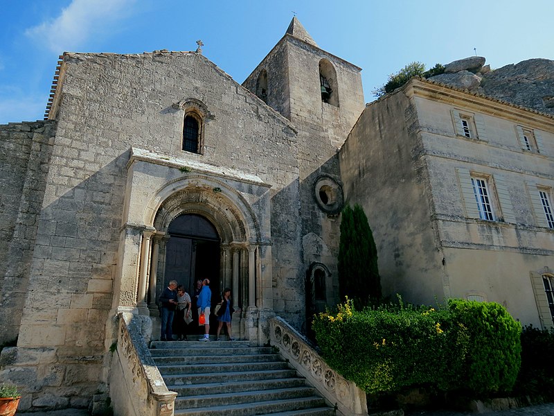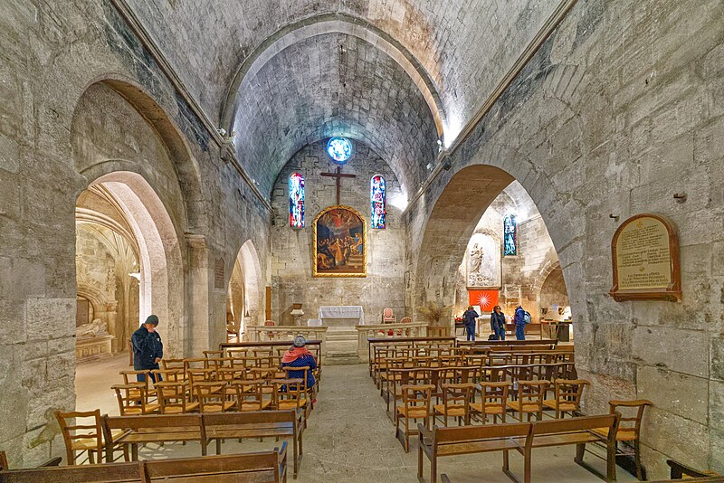 Les vitraux de l'église sont l'œuvre du maître-verrier Max Ingrand et ont été offerts par le prince Rainier de Monaco. Lors de fouilles en face du maître-autel, on a découvert un corps ayant bénéficié d'une toilette mortuaire et tenant un livre de piété qui se désagrégea au toucher, ainsi que le corps d'une jeune fille à la chevelure blonde, surnommée Cabeladuro d'or ; ce dernier est conservé au Museon Arlaten d'Arles.