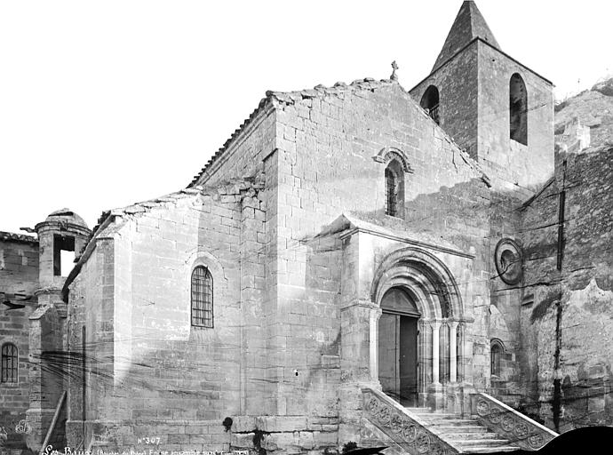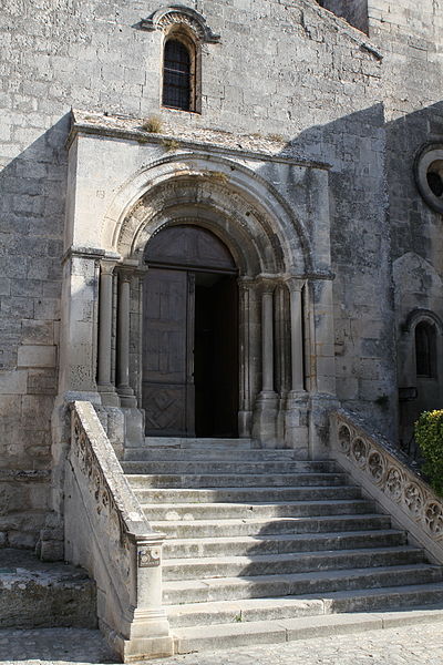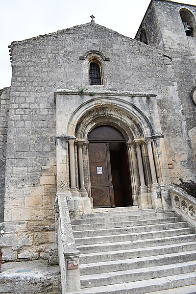 L'édifice présente une surface presque carrée et se compose de trois nefs, auxquelles une travée a été ajoutée en 1609. L'escalier extérieur et l'église ont été restaurés en 1862 par l'architecte Henri Révoil ; sous une chapelle démolie, ces travaux ont mis au jour un ossuaire d'environ 4 m² à l'emplacement de l'actuel escalier d'accès. Près du portail, sous la colonne la plus proche à droite, on relève l'inscription au couteau « F RIC. MISTRAL ». Sur le côté gauche, une tour circulaire coiffée de gargouilles, appelée lanterne des morts, servait autrefois à signaler la mort d'un habitant par l'allumage d'une flamme.