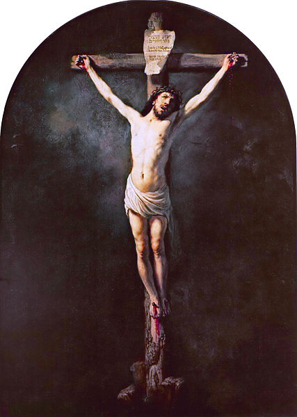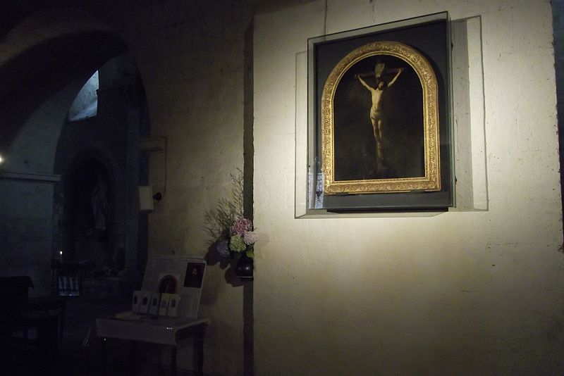 Le Christ en croix, peint par Rembrandt et daté de 1631, a des dimensions qui indiquent qu'il s'agit d'une peinture de dévotion plutôt que d'un tableau destiné à l'ornement d'église. Le tableau réapparaît en 1804 dans la famille Duffour, installée à Dunkerque, qui l'offre à la paroisse Saint-Vincent du Mas-d'Agenais. Déposé dans la sacristie, il est découvert en 1850 par Eugène de Lonlay puis restauré à Paris dans les musées impériaux. L'œuvre a été classée au titre des objets en 1918.