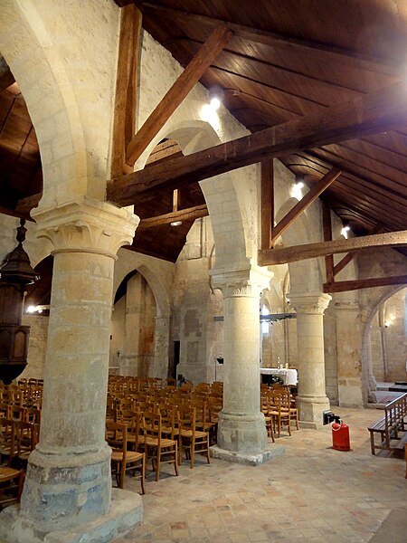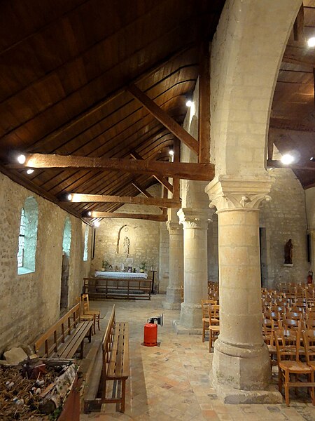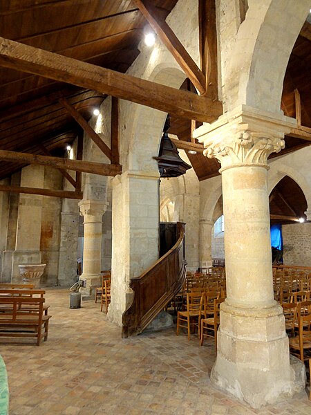 L'église Saint‑Vivien, située à Bruyères‑sur‑Oise (Val‑d'Oise) près de Persan et Beaumont‑sur‑Oise, est dédiée à saint Vivien de Sébaste et la fondation de la paroisse est rapportée à 755 par l'abbé Vital Jean Gautier. Les parties les plus anciennes, notamment la base du clocher, remontent à la première moitié du XIIe siècle, et l'édifice a été remanié au cours des XIIe et XIIIe siècles. Des fouilles vers 1970 ont mis au jour le chevet roman primitif constitué de trois absides en hémicycle, dont les vestiges s'accordent avec la base du clocher, excepté la fenêtre. Le premier étage du clocher présente des chapiteaux soignés tandis que le second étage de baies, à la disposition originale, a été entièrement reconstitué après sa destruction pendant la Seconde Guerre mondiale en 1940. Le chœur et son collatéral sud, datés pour l'essentiel du milieu du XIIe siècle, conservent quatre voûtes d'ogives archaïques, alors que les fenêtres rayonnantes du chevet et la chapelle nord appartiennent à un goût gothique de la seconde moitié du XIIIe siècle. La nef et ses bas‑côtés ne sont pas voûtés ; leurs grandes arcades relèvent du style gothique primitif du début du XIIIe siècle, tandis que les murs hauts de la nef conservent des vestiges d'ouvertures romanes. L'ensemble constitue un exemple remarquable d'église rurale des XIIe‑XIIIe siècles, relativement peu remaniée depuis son achèvement. Classée au titre des monuments historiques par arrêté du 2 juin 1938, l'église a bénéficié de campagnes de restauration dans les années 1930 et dans les années 1960, et se présente aujourd'hui en bon état ; elle appartient au regroupement paroissial de Persan et accueille la plupart des messes dominicales le samedi soir à 18 h 30. Implantée à l'est du centre du village, près de la rive droite de l'Oise, elle est accessible depuis une grande place publique rue de Boran et par une courte impasse reliant la façade occidentale à la rue du Pont ; la base du clocher et le chevet sont pour partie enclavés dans des propriétés privées, le bas‑côté sud étant accolé à un ancien corps de ferme et la chapelle sud donnant sur un petit jardin public. Sous l'Ancien Régime, la paroisse relevait du doyenné de Beaumont, de l'archidiaconé de Clermont et du diocèse de Beauvais, le collateur de la cure étant l'évêque de Beauvais ; la Révolution et les réorganisations diocésaines ultérieures ont modifié cette organisation jusqu'à la création du diocèse de Pontoise en 1966, et aujourd'hui Bruyères‑sur‑Oise fait partie d'un ensemble paroissial avec Bernes, Persan, Champagne‑sur‑Oise et Ronquerolles. L'étude architecturale montre que, bien que l'essentiel de l'aspect actuel date du XIIIe siècle, plusieurs éléments romans subsistent : archivoltes d'anciennes fenêtres retrouvées au‑dessus de piliers, fondations d'absidioles et la base voûtée du clocher attestent des campagnes antérieures. Les grandes arcades de la nef ont été obtenues par reprise en sous‑œuvre des murs gouttereaux, vraisemblablement pour conserver l'ancienne charpente, ce qui explique la coexistence d'un vaisseau non voûté et de vestiges romans. Les caractéristiques des voûtes du chœur — ogives à profil monotorique épais, bombement des voûtes et retombées sur culs‑de‑lampe — les apparentent à des exemples archaïques du Beauvaisis, même si elles restent plus récentes que la base du clocher. Les campagnes de restauration du XXe siècle ont été marquées par l'intervention de l'architecte Jules Formigé pour le clocher entre 1931 et 1934, par des réparations et des protections pendant et après la guerre, puis par la reprise des travaux sous la direction de Sylvain Stym‑Popper dans les années 1960 aboutissant à la reconstitution du dernier étage du beffroi et de la flèche entre 1969 et 1972. L'église, légèrement déviée vers le nord‑est du côté du chevet, se compose d'une nef de quatre travées sans voûte accompagnée de bas‑côtés, d'une base de clocher voûtée d'arêtes à l'est du bas‑côté nord et au nord du chœur, d'un chœur de deux travées à chevet plat et de deux chapelles latérales voûtées d'ogives. La chapelle sud s'inscrit en continuité avec le bas‑côté sud de la nef, tandis que la chapelle nord, perpendiculaire, communique avec le chœur et la base du clocher par une courte travée voûtée en berceau brisé ; une petite sacristie occupe une niche de la seconde travée. À l'intérieur, la nef présente un unique niveau d'élévation composé des grandes arcades simples, une charpente lambrissée, des piliers cylindriques en tambour et des chapiteaux sobres sculptés de feuilles ; sous l'arc triomphal, la poutre de gloire supporte un grand Christ en croix. La base du clocher, implantée au nord du chœur, affiche une architecture romane dépouillée : une voûte d'arêtes, une arcade orientale occupant presque toute la largeur de la travée, des colonnettes à chapiteaux et une grande baie remaniée plus tardivement. Les parties orientales montrent plusieurs campagnes : les supports et les doubleaux du chœur appartiennent à une phase intermédiaire, tandis que les remplages des fenêtres du chevet et des chapelles présentent un décor de réseau de style rayonnant attribuable à une phase postérieure. L'extérieur associe un portail occidental néo‑classique et des élévations en pierre de taille et moellons ; le clocher, entièrement en pierre de taille, comporte un second étage de baies remarquablement sculptées et une flèche octogonale en charpente recouverte d'ardoise, l'étage supérieur ayant été restitué après la guerre. Le mobilier comprend plusieurs pièces classées au titre des objets : des statues en bois polychrome (un évêque probablement saint Vivien et saint Paul, XVIe siècle), une statuette‑reliquaire de saint Vivien en cuivre repoussé dat