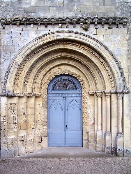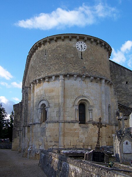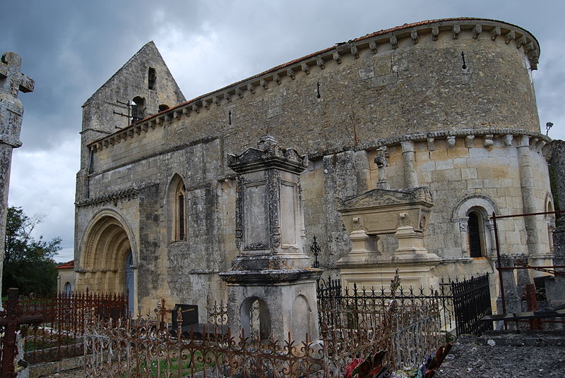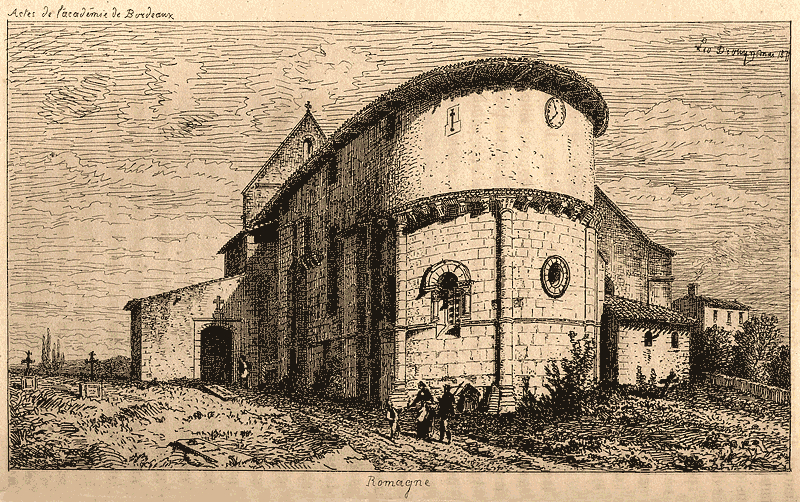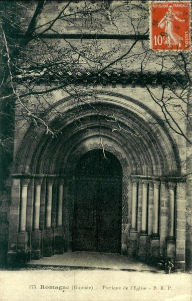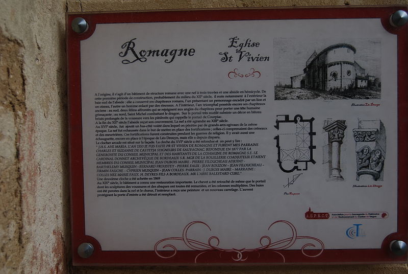 L'église Saint-Vivien, de confession catholique, se situe au cœur du village de Romagne, le long de la route départementale D19e3, dans le département de la Gironde. Classée en totalité au titre des monuments historiques par arrêté du 24 mars 2003 après une inscription en 1925, elle est entourée d'un cimetière lui-même classé en 1997. D'origine romane (XIIe siècle), l'édifice conserve une nef à trois travées et une abside en hémicycle ; extérieurement subsiste la baie sud de l'abside et, intérieurement, l'arc triomphal avec deux chapiteaux anciens. À la fin du XIIe siècle, l'abside et les deux premières travées ont reçu des voûtes en berceau brisé et la nef a été agrandie au XIIIe siècle, accompagnée de consoles gothiques ornées de bustes et de têtes. Aux XVe et XVIe siècles, la nef a été fortifiée : un bas-côté voûté a été ajouté au XVIe siècle et la nef a été exhaussée pour permettre l'installation de créneaux et de meurtrières ; une tourelle d'escalier percée de meurtrières a été ajoutée au clocher‑mur occidental en 1527, une échauguette ayant disparu au XIXe siècle. La cloche de 1553 a été refondue en 1877 et une seconde cloche a été acquise en 1869. En 1886 l'édifice a été remanié : l'ancien portail roman a été remplacé par un fac‑similé et une corniche modillonnaire décorative, des baies ont été percées dans la nef et le chœur, l'auvent protégeant le portail a été détruit, et l'intérieur a reçu une peinture et un nouveau carrelage. La croix de cimetière, érigée au sud du chevet au XVIe siècle, repose sur un piédestal de section carrée et un fût monolithe de 3,5 mètres portant une petite croix en pierre sans décor. L'église est ornée de chapiteaux dont certains témoignent de l'influence des ateliers de La Sauve‑Majeure, en particulier au niveau de l'arc triomphal. Une fenêtre romane conserve des chapiteaux à iconographie symbolique : à l'ouest, un homme en bliaud repousse un lion et un oiseau, figure d'un ascète insensible aux tentations, tandis qu'à l'est un personnage est enlacé par de grandes lianes, pendant moral de son homologue ; ces chapiteaux originaux ont été remplacés en 1886 par des créations néo‑romanes, mais les dessins et descriptions de Léo Drouyn (1877) en conservent le souvenir, mentionnant aussi des niches sculptées abritant une sirène et des serpents. Sous la corniche du chevet subsistent six modillons romans — protomé d'animal, tête d'homme, feuillages, tonnelet, tête de cochon et pointes de diamant — dont la série, trop fragmentée, ne permet pas de reconstituer une leçon morale précise. Les deux chapiteaux de l'arc triomphal sont d'une grande qualité : au sud figurent deux lions bi‑corporés à tête humaine et au nord l'archange Michel terrassant le dragon, ce dernier renvoyant à un modèle de l'abbaye de La Sauve‑Majeure tandis que le premier évoque un chapiteau de l'abbatiale Sainte‑Croix de Bordeaux.