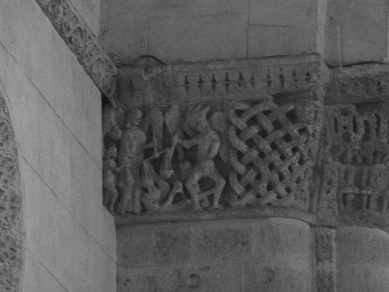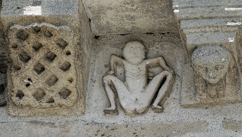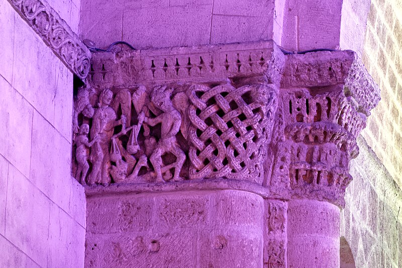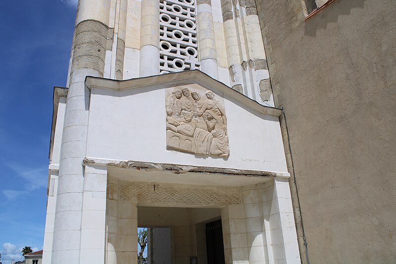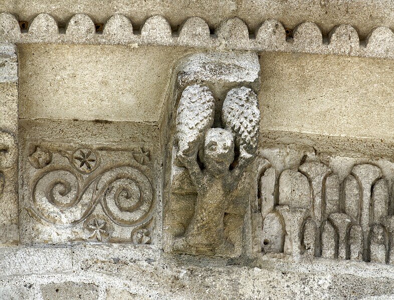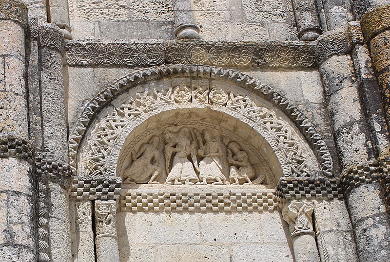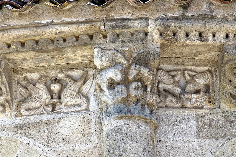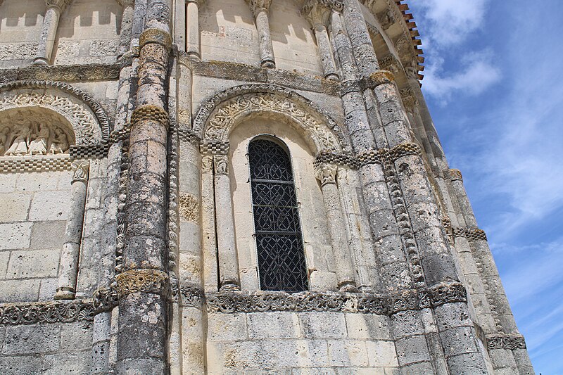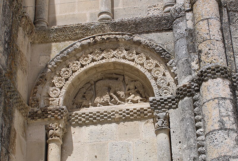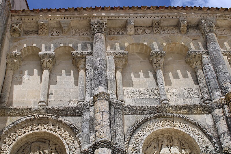 L'église Saint-Vivien, située au centre du bourg de Saint-Vivien-de-Médoc en Gironde, conserve des éléments remontant au XIIe siècle. La partie romane a été classée en 1862 et l'ensemble de l'édifice inscrit en 2008. L'édifice associe une abside romane, une nef élargie au XIXe siècle avec bas-côtés et un clocher reconstruit au XXe siècle. Selon la tradition locale, l'église s'élèverait sur l'emplacement d'un lieu de culte paléochrétien et d'un ancien site païen, mais aucune trace de ces phases antérieures n'a été retrouvée. De l'église romane du XIIe siècle subsistent principalement l'abside et les chapiteaux de l'arc triomphal ; l'abside a été démontée puis remontée lors des travaux de 1880. La nef a été agrandie et reconstruite sous la direction de l'architecte Édouard Bonnore au XIXe siècle, qui a notamment ajouté deux bas-côtés. L'édifice a été fortifié et a subi un incendie lors des conflits religieux, puis a connu un état de délabrement pendant la Révolution, nécessitant des campagnes de restauration au XIXe siècle. En 1877 la foudre endommagea gravement le clocher et fragilisa l'abside ; les travaux conduits par Bonnore aboutirent à la reconstruction et au remontage des éléments sculptés, achevés en 1882. Pendant la Seconde Guerre mondiale le clocher fut détruit et l'église endommagée ; le lambris du plafond et la voûte du chœur, détruits à cette période, ont été refaits dans les années 1960. Le clocher actuel, réalisé par l'architecte André Larcher dans les années 1950, est une tour carrée en béton ornée de claustras et de bas-reliefs dus au sculpteur Joseph Rivière. Il comprend quatre niveaux polygonaux formant une flèche et des baies percées de motifs circulaires ; la corrosion des armatures a toutefois provoqué des fissures qui exigent une restauration. Le chevet roman s'organise en neuf pans séparés par des colonnes engagées et présente trois registres : un registre médian d'arcades et de baies en plein cintre, un registre supérieur d'arcatures géminées et de fenêtres aveugles, et une corniche moulurée à modillons alternant avec des métopes sculptées. La décoration sculptée comprend des frises de billettes, de rinceaux et de fleurs à six pétales inscrites dans des cercles, ainsi que de nombreux modillons, métopes et chapiteaux dont certains historiés. Les pans du chœur, notamment les pans 1 et 2 au sud et 8 et 9 au nord, comportent des baies aveugles ornées de tympans et de chapiteaux richement sculptés ; deux tympans méridionaux se distinguent par des bas-reliefs figurant des personnages et des musiciens. Le tympan du pan 1 représente trois personnages, dont un musicien jouant du psaltérion, tandis que le tympan du pan 2 montre quatre personnages autour d'un objet sphérique dont l'interprétation reste discutée. Les autres pans du chevet offrent une variété d'iconographies romanes : animaux et créatures fantastiques, figures humaines, scènes bibliques comme la chute d'Adam et Ève, et compositions de rinceaux et d'entrelacs, certains chapiteaux ayant été restaurés au XIXe siècle. Les chapiteaux de l'arc triomphal comportent notamment une Pesée des âmes où saint Michel tient la balance tandis que des diables s'efforcent de fausser le jugement, et l'ensemble sculpté présente aussi des animaux superposés typiques de la sculpture romane du Sud-Ouest. À l'intérieur, la nef est séparée des bas-côtés par cinq arcades en plein cintre à doubles tores sculptés de feuillages, rubans et perles ; les piliers reçoivent des colonnes engagées à chapiteaux végétaux et un bandeau de rinceaux court au-dessus des arcades. Nef et bas-côtés sont couverts de lambris et éclairés par des fenêtres en plein cintre ; dans la première travée du chœur, deux portes donnent accès aux sacristies et sont surmontées de médaillons sculptés aux armes épiscopales et papales. Le sanctuaire comporte deux travées aveugles formant le chœur et conserve plusieurs chapiteaux romans malgré les restaurations du XIXe siècle. Les fonts baptismaux se situent dans le bas-côté nord et un monument aux morts occupe le bas-côté sud ; la porte d'accès est surmontée d'une tribune d'orgue accessible par un escalier en bois. L'orgue actuel a été construit en 1983 par Bernard Chevrier et inauguré le 18 juin 1983 par Louis Robillard.