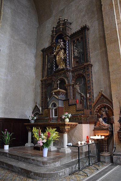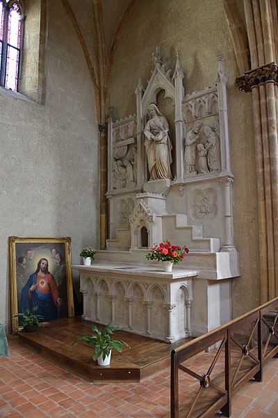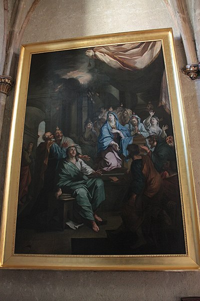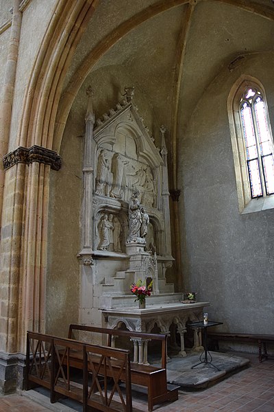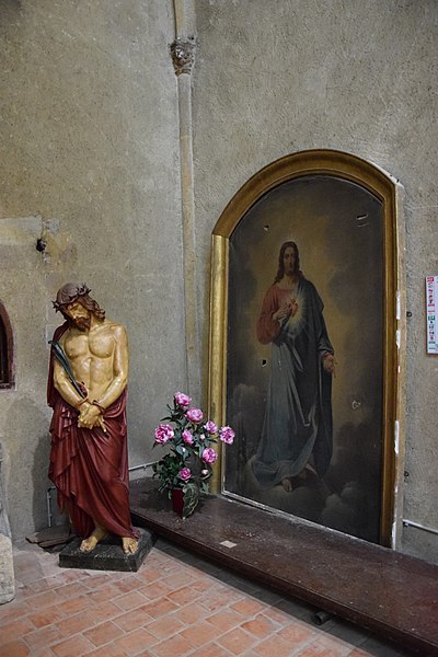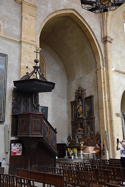 De nombreux objets du mobilier intérieur sont inscrits à l'inventaire des monuments historiques. Y figure notamment une cloche en bronze datée du XVIIIe siècle. Trois cloches sont en place : Jeanne-Paule (note Fa3, diamètre 112 cm, épaisseur 83, profil lourd), Jean-Baptiste (fondeur anonyme, 1805, diamètre 87 cm, épaisseur 61, profil moyen) et Conception (remplaçante d'une cloche de 1641 provenant de la chapelle Notre-Dame de Montgauzy, fondue par Bollée à Orléans en 1982, note Do4, diamètre 67 cm, épaisseur 50, profil lourd). Ces trois cloches sont montées sur des jougs dits "demoiselles" du fondeur Barnabé Martin ; elles étaient en volée tournante avant l'électrification.