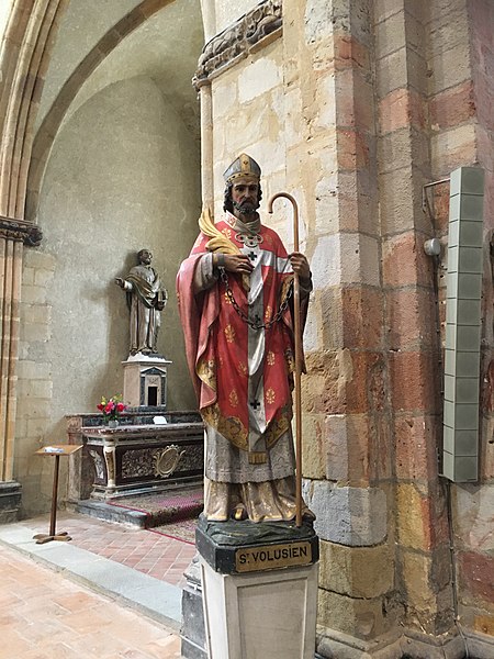 L'abbatiale Saint-Volusien, située à Foix dans l'Ariège, est une église d'architecture romane qui a connu de multiples reconstructions. Sa fondation remonte au VIIIe siècle et elle fut rebâtie par Roger II, comte de Foix. Des chanoines réguliers de saint Augustin prirent possession de l'abbaye en 1104, qui abritait les reliques de saint Volusien ; à cette époque la construction d'une vaste église à trois nefs, comportant un transept et une ou trois absides, fut entreprise. Du bâtiment médiéval subsistent principalement les murs des bas-côtés, la base de la nef, le transept et le portail sud. Au XIVe siècle, l'église fut transformée en édifice gothique à nef unique, achevé par un chevet entouré de chapelles rayonnantes entre les contreforts, et une tour carrée fut ajoutée à l'ouest de la nef. L'édifice fut en partie ruiné pendant les guerres de Religion et les reliques y furent brûlées. Des travaux de restauration furent entrepris à partir de 1609, exécutés notamment de 1609 à 1613, puis se poursuivirent tout au long du XVIIe siècle ; la voûte paraît avoir été achevée vers 1670. L'église a été classée au titre des monuments historiques par arrêté du 30 juillet 1964.