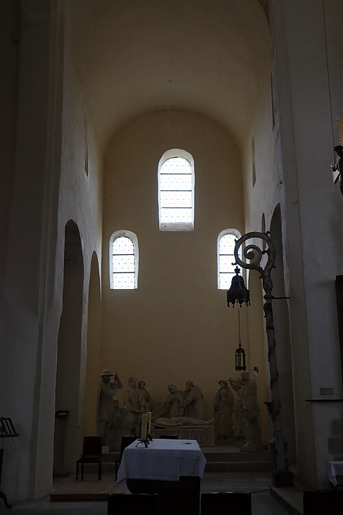 L'église Saint-Vorles, édifice roman de Châtillon-sur-Seine (Côte-d'Or), s'élève isolée sur un promontoire dominant l'agglomération à l'est. Son origine remonte au Xe siècle et une église antérieure abritait déjà, depuis 868, les reliques de saint Vorles venues de Marcenay. L'édifice actuel fut principalement construit sous l'épiscopat de Brun de Roucy, évêque de Langres, à l'intérieur d'un castrum. De style roman, sa façade extérieure est ornée de bandes lombardes caractéristiques. Le clocher, situé à la croisée du transept, fut reconstruit au XIIe siècle. Les chapelles qui flanquent le chœur — à gauche la chapelle Sainte-Thérèse et la chapelle du Carmel, à droite la chapelle du Rosaire — datent des XIVe et XVe siècles. En 1023, les reliques de saint Vorles furent apportées au concile d'Héry. Au premier quart du XVIIe siècle, d'importants travaux remodelèrent l'édifice : on reconstruisit la partie supérieure du clocher du massif antérieur, on remania la partie droite de ce massif, on construisit les voûtes de la nef (date 1619 sur la clé de voûte de la première travée), on exhaussa les murs des bas-côtés, on agrandit la chapelle Saint-Bernard vers l'ouest, on éleva la chapelle Sainte-Croix et l'on remania le porche, les contreforts et les fenêtres du chœur ; une petite chapelle ajoutée contre la chapelle du Rosaire servira plus tard de sacristie. En 1854 fut construite une sacristie postérieure adossée à l'abside et remaniée la chapelle Saint-Bernard, avec la réalisation d'un faux cul-de-four et de l'escalier actuel ; deux tourelles d'escalier furent élevées de part et d'autre du porche à la même époque. Une campagne de restauration entre 1927 et 1934 a notamment conduit au refaitage de la couverture en pierre plate. De 1959 à 1974, la collégiale fit l'objet d'une restauration générale qui entraîna la démolition de la sacristie de 1854, du faux cul-de-four de la chapelle Saint-Bernard et des tourelles du porche, la réfection de l'enduit intérieur, la réouverture de certaines fenêtres et la pose d'une couverture en bardeau sur le clocher du massif antérieur. D'autres travaux de restauration ont également eu lieu dans les années 1990 puis dans les années 2000. Des marques de tâcheron sont gravées sur l'empattement du massif antérieur, sur les bas-côtés et la chapelle Sainte-Croix, ainsi que sur les contreforts et les murs latéraux du porche. D'abord collégiale, l'église resta paroissiale jusqu'en 1807 ; elle ne l'est plus depuis et n'accueille plus de offices réguliers, mais elle est ouverte pour des baptêmes et des mariages. L'architecture présente une nef romane très haute à trois travées, flanquée de deux bas-côtés, débouchant sur un double transept de trois travées dont le bras nord dessert partiellement la descente vers la crypte, et se prolongeant par un chœur profond avec abside entouré de petites chapelles. La crypte abrite la chapelle Saint-Bernard aménagée au début du XVIIe siècle et un oratoire daté du IVe siècle ; elle contient une statue de la Vierge à l'Enfant, vénérée sous les titres de Notre-Dame la Grande puis Notre-Dame de Toutes Grâces en lien avec la dévotion associée à saint Bernard de Clairvaux. Le mobilier, répertorié à l'Inventaire général, comporte plusieurs pièces classées au titre des monuments historiques, parmi lesquelles figurent un diptyque de la translation des reliques de saint Vorles, une mise au tombeau de 1527, des peintures monumentales, des tableaux de la vie de saint Vorles, des boiseries d'autel et du banc d'œuvre, des dalles funéraires et un tableau de la Vierge à l'Enfant, ainsi que des stalles, une fresque murale et la polychromie de la crypte. Sur la même colline fut aussi édifié le château des ducs de Bourgogne et, au milieu de ses ruines, un cimetière est attesté depuis le XIXe siècle.