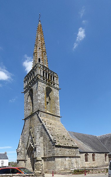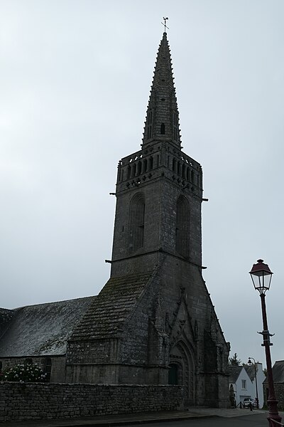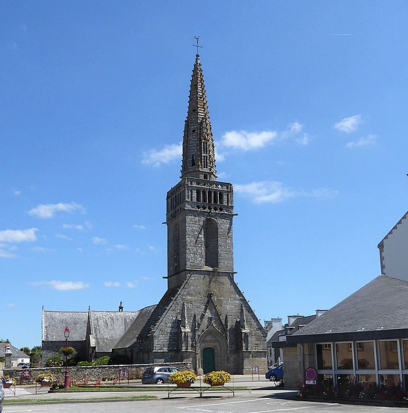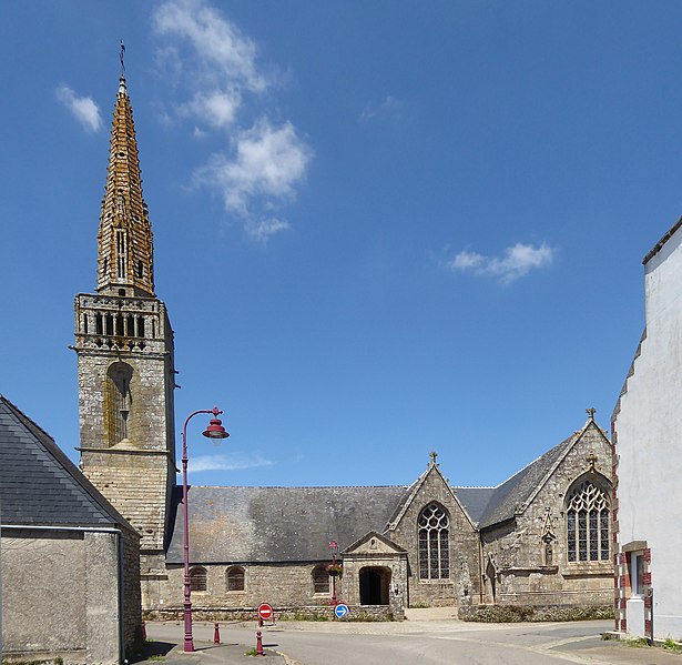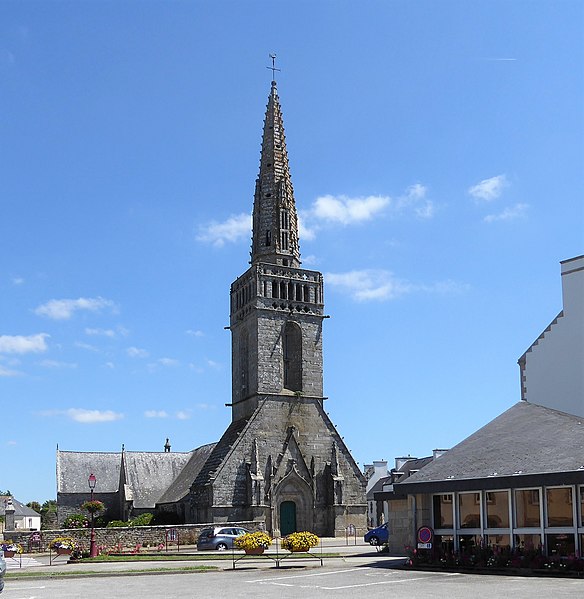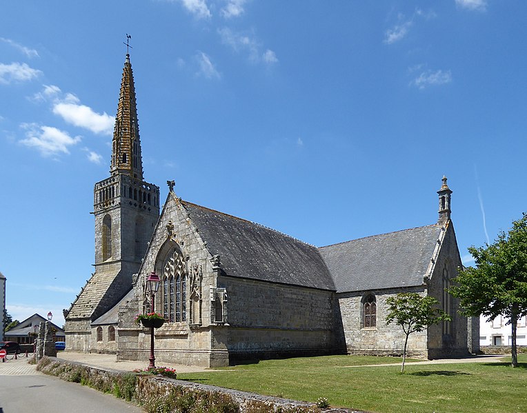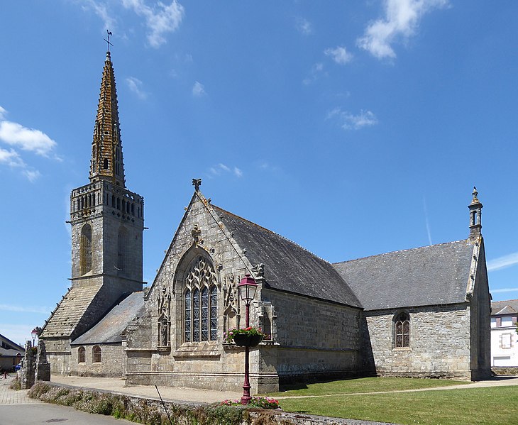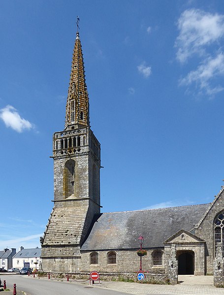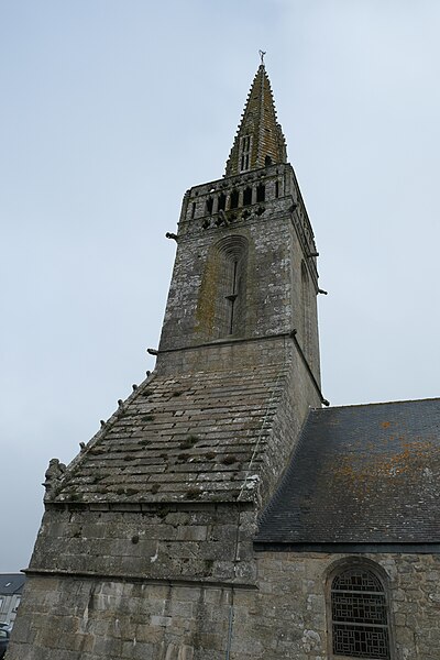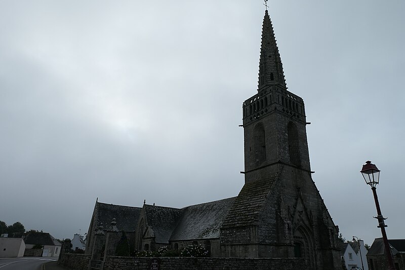 L'église Saint-Winoc de Plouhinec se distingue par un transept d'une grande ampleur, marqué par l'élégance du croisillon méridional et une fenêtre flamboyante. La tour, inspirée de celle de Pont-Croix, porte la date 1582 sur l'appui de sa balustrade supérieure, mais elle aurait été commencée vers 1530-1540, date que l'on doit aussi attribuer à la façade et au transept ; l'ensemble s'inscrit dans la tradition gothique. À l'intérieur du transept subsistent des fragments de sablières anciennes. Le reste de l'édifice a été reconstruit aux XVIIIe et XIXe siècles. Construite dans la seconde moitié du XVIe siècle, l'église a probablement été élevée sur un bâtiment antérieur, dont des fondations ont été retrouvées sous le dallage lors de travaux en 1987. Les nombreuses inscriptions datées sur les murs témoignent de deux grandes phases de construction. La première, repérable entre 1571 et 1587, se lit de bas en haut sur la tour ouest et s'accompagne de noms de fabriciens difficiles à déchiffrer ; la plus ancienne date relevée est gravée sous le marchepied du maître-autel (1565). La seconde période couvre une grande partie du XVIIIe siècle, comme l'attestent les inscriptions « ROGEL . 1718 / G . LE . GOVIL . P / H . LEDVC . P » sur le transept nord et « 1769 » associé à un calice au-dessus de la sacristie. Ces restaurations et remaniements concernent également la tour, qui porte les inscriptions « YVES CONNAN RECTEUR 1731 » côté sud et « 1730 CLORENNEC DESORET » côté nord. Les archives montrent qu'au XIXe siècle l'édifice se détériora et que la commune et la paroisse cherchèrent sans cesse des secours pour le préserver. En 1891, une violente tempête causa des dégâts importants, notamment à la toiture, et des travaux furent alors entrepris. Au XXe siècle, malgré une baisse de fréquentation liée au rattachement du village de Keridreuff à Pont-Croix et à la création de la paroisse de Poulgoazec, l'église paroissiale a été régulièrement entretenue, restaurée et modernisée. Les derniers travaux mentionnés comprennent le rejointement du clocher en 1987 et 1989 ainsi que la restauration des retables en 1991.