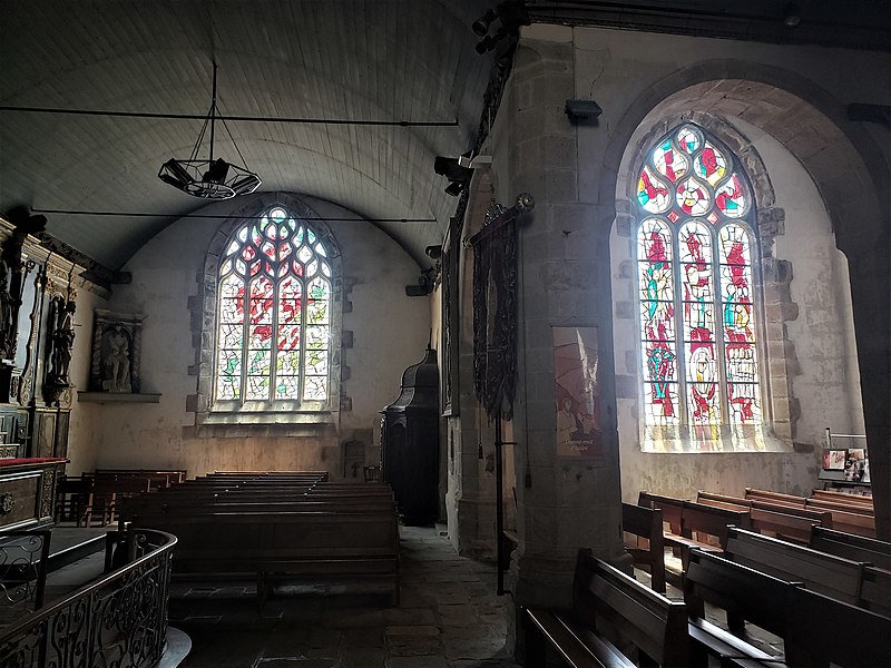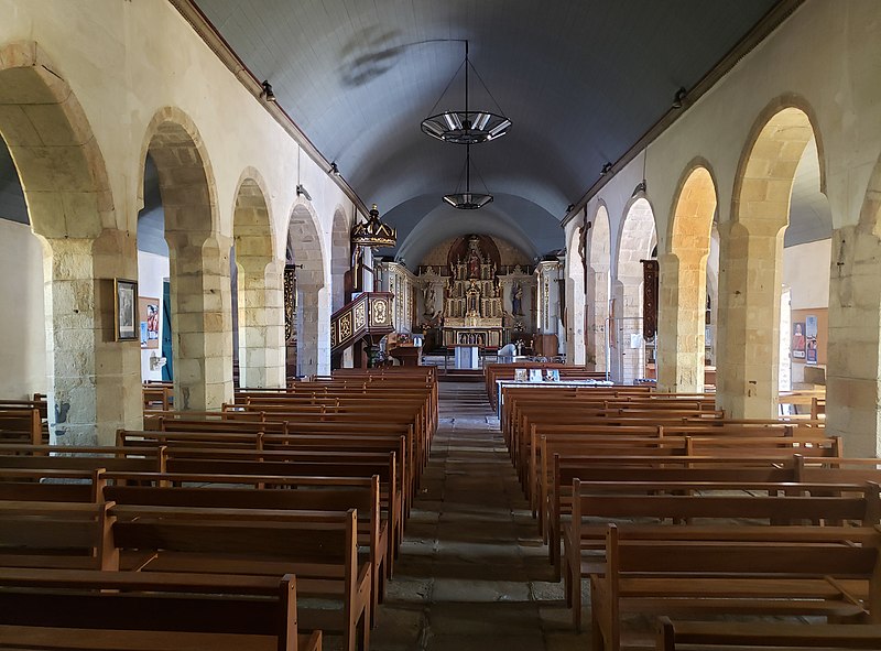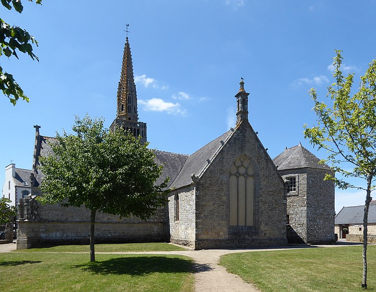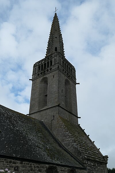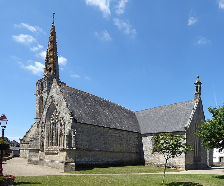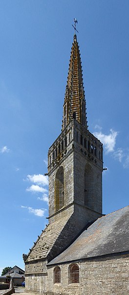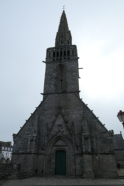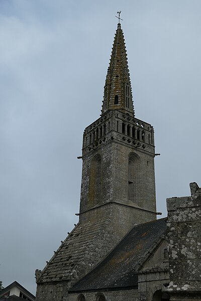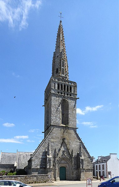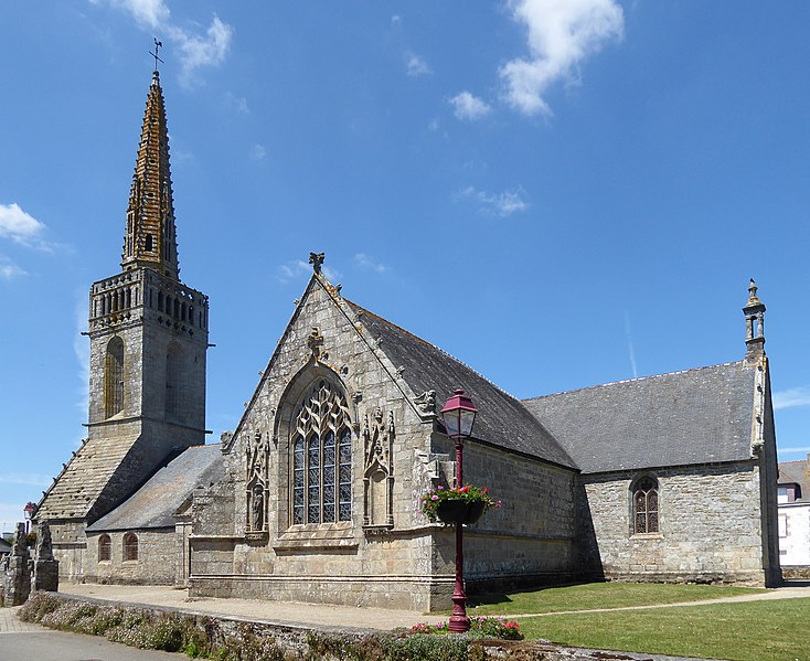 L'église Saint-Winoc de Plouhinec se distingue par un transept d'une grande ampleur, marqué par l'élégance du croisillon méridional et une fenêtre flamboyante. La tour, inspirée de celle de Pont-Croix, porte la date 1582 sur l'appui de sa balustrade supérieure, mais elle aurait été commencée vers 1530-1540, date que l'on doit aussi attribuer à la façade et au transept ; l'ensemble s'inscrit dans la tradition gothique. À l'intérieur du transept subsistent des fragments de sablières anciennes. Le reste de l'édifice a été reconstruit aux XVIIIe et XIXe siècles. Construite dans la seconde moitié du XVIe siècle, l'église a probablement été élevée sur un bâtiment antérieur, dont des fondations ont été retrouvées sous le dallage lors de travaux en 1987. Les nombreuses inscriptions datées sur les murs témoignent de deux grandes phases de construction. La première, repérable entre 1571 et 1587, se lit de bas en haut sur la tour ouest et s'accompagne de noms de fabriciens difficiles à déchiffrer ; la plus ancienne date relevée est gravée sous le marchepied du maître-autel (1565). La seconde période couvre une grande partie du XVIIIe siècle, comme l'attestent les inscriptions « ROGEL . 1718 / G . LE . GOVIL . P / H . LEDVC . P » sur le transept nord et « 1769 » associé à un calice au-dessus de la sacristie. Ces restaurations et remaniements concernent également la tour, qui porte les inscriptions « YVES CONNAN RECTEUR 1731 » côté sud et « 1730 CLORENNEC DESORET » côté nord. Les archives montrent qu'au XIXe siècle l'édifice se détériora et que la commune et la paroisse cherchèrent sans cesse des secours pour le préserver. En 1891, une violente tempête causa des dégâts importants, notamment à la toiture, et des travaux furent alors entrepris. Au XXe siècle, malgré une baisse de fréquentation liée au rattachement du village de Keridreuff à Pont-Croix et à la création de la paroisse de Poulgoazec, l'église paroissiale a été régulièrement entretenue, restaurée et modernisée. Les derniers travaux mentionnés comprennent le rejointement du clocher en 1987 et 1989 ainsi que la restauration des retables en 1991.