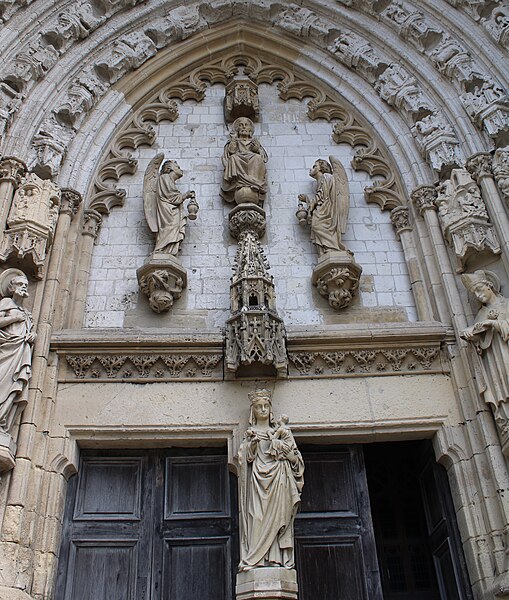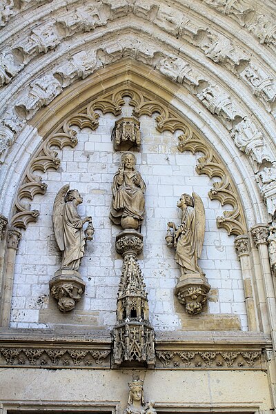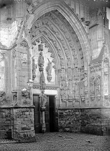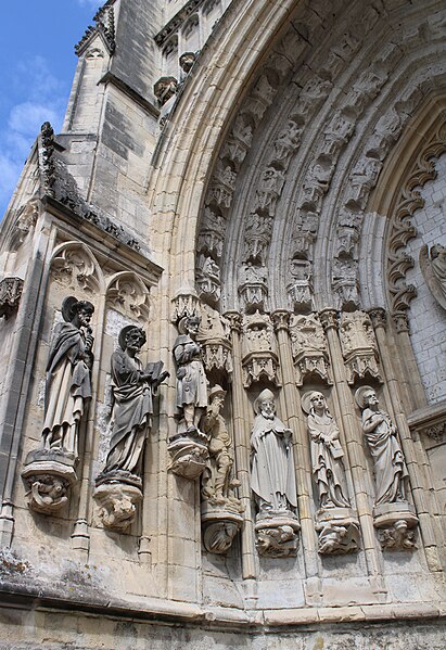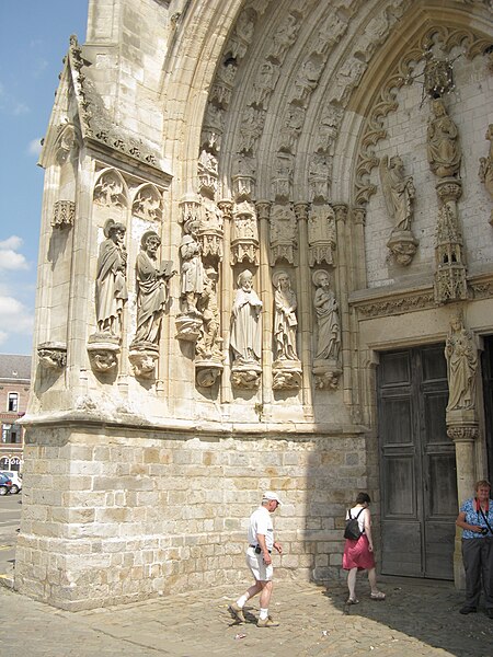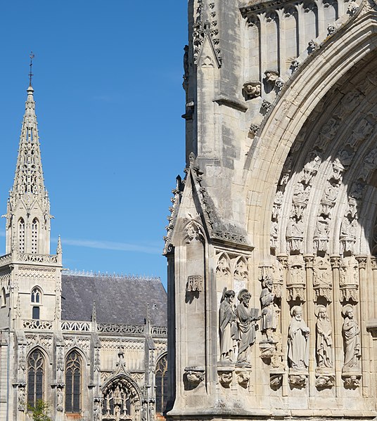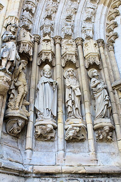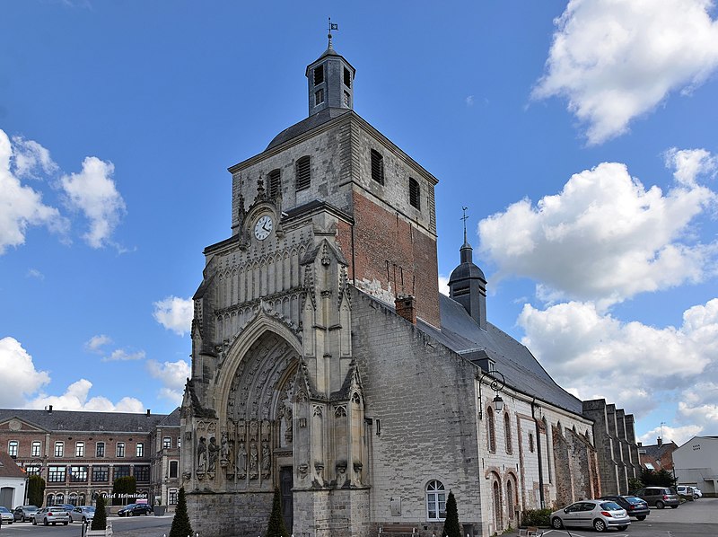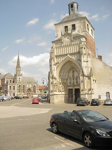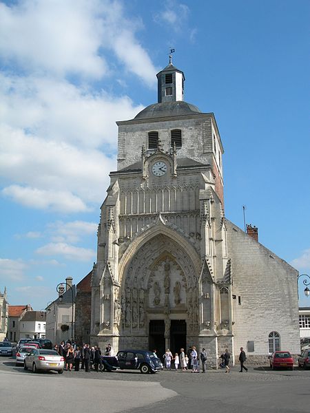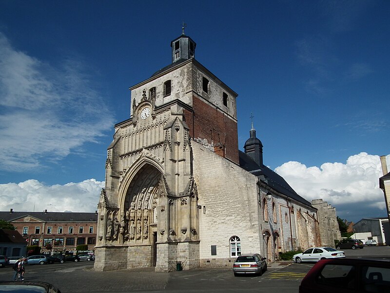 L’église Saint-Saulve est une église catholique située à Montreuil-sur-Mer, dans le département du Pas-de-Calais (région Hauts-de-France), et elle est classée au titre des monuments historiques depuis 1910. À l’origine abbatiale, sa construction remonte au XIe siècle ; elle comprenait un clocher-porche encadré par deux tours, une nef avec collatéraux, un transept flanqué de quatre chapelles, un chœur à déambulatoire ouvert sur trois chapelles rayonnantes et deux tours surplombant les bas-côtés orientaux du transept. L’édifice a été remanié aux XIIIe et XVIe siècles après un incendie qui provoqua l’effondrement des voûtes, et une chapelle dédiée à Notre-Dame fut ajoutée au bas-côté nord au XVe siècle. Les catastrophes de 1467 et 1537 ont profondément modifié le plan et l’élévation : ne subsistent du plan primitif que le clocher-porche, la base de la tourelle gauche, la nef avec ses bas-côtés et la chapelle Notre-Dame. Depuis le parking situé à l’arrière de la mairie, on aperçoit les vestiges du chœur et des chapelles rayonnantes. La nef compte huit travées, les trois dernières étant aujourd’hui occupées par le chœur, et seul le bas-côté nord a résisté à l’incendie de 1537. Le collatéral sud a été reconstruit entre 1596 et 1631, comme l’indiquent les armes de l’abbé Godefroy de La Rue sur une clé de voûte ; ses deux dernières travées ont été élevées en 1819 puis voûtées en 1869. Après 1537, l’élévation s’est réduite à deux niveaux : de grandes arcades reposant sur des piliers octogonaux et un triforium remanié vers 1480, à l’exception de la dernière travée nord qui date du XIIIe siècle. La voûte ornée de liernes et de tiercerons, exécutée au milieu du XVIe siècle, a été reprise environ cinq mètres plus bas que la précédente, et la disparition des fenêtres hautes a assombri l’édifice, désormais éclairé par les fenêtres géminées des collatéraux et trois oculi au-dessus du maître-autel. L’église conserve l’un des plus riches trésors d’église du nord de la France : le trésor de l’abbaye Saint-Saulve ayant été détruit lors de l’autodafé de 1793, la collection actuelle provient essentiellement de l’abbaye Sainte-Austreberthe et comporte quelques éléments du XIXe siècle. La plus ancienne pièce est la crosse pastorale attribuée à sainte Austreberthe, abbesse de Pavilly : son manche en bois, daté de la fin du VIIe siècle, fut richement orné au XIIe siècle. On y trouve également de beaux reliquaires d’émail ou d’argent doré ornés de cabochons et de pierres semi-précieuses, principalement visibles lors de visites guidées, ainsi que plusieurs reliquaires en argent repoussé du milieu du XVIIe siècle présentés à l’extrémité du collatéral nord, témoins de l’ancienne richesse de l’abbaye bénédictine Sainte-Austreberthe.