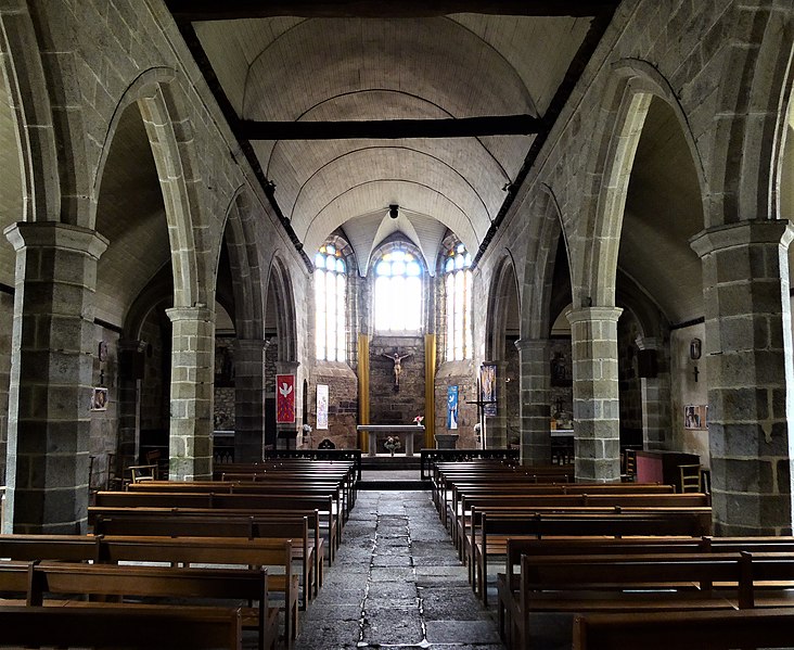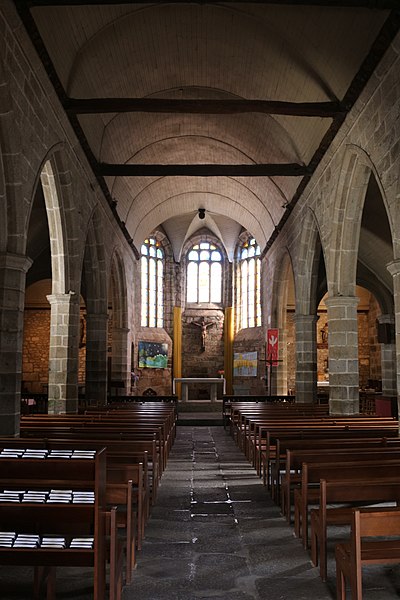 Édifice à trois nefs, avec transepts et abside polygonale, l'église Saint-Yves a été remaniée à différentes époques. L'intérieur présente un voûtement en bois orné de sablières sculptées. Dévastée par la foudre en 1818, elle fut restaurée par Bideau d'après les plans de l'architecte Blavon-Duchesne ; les travaux portèrent sur les murs des bas-côtés, la façade et la tour. La façade porte la date de 1818. Entre 1869 et 1871, la façade et le clocher furent reconstruits d'après les plans de l'architecte Jules Boyer, les travaux étant exécutés par l'entrepreneur Mathurin Collin. Plusieurs inscriptions témoignent des parties anciennes conservées.