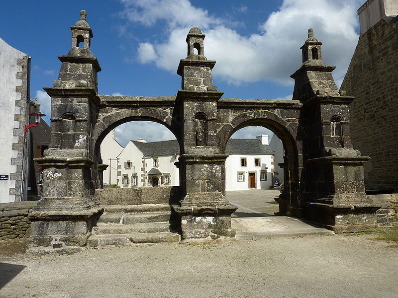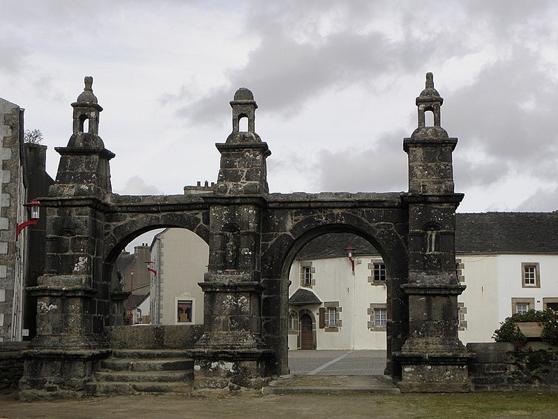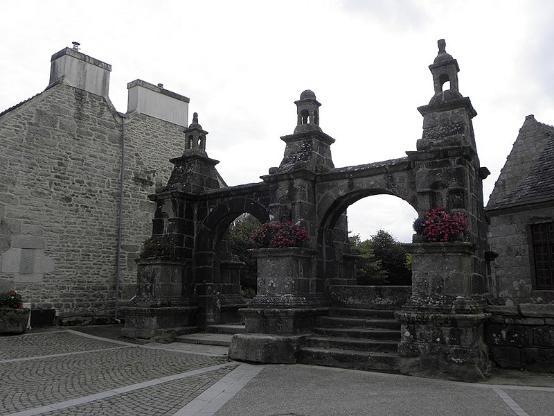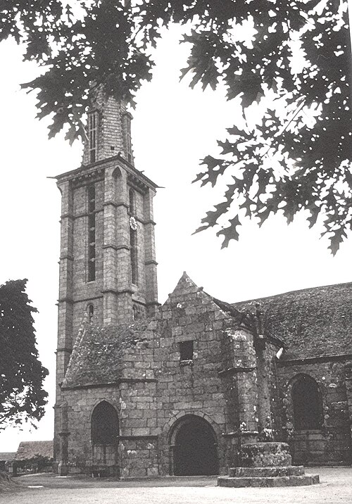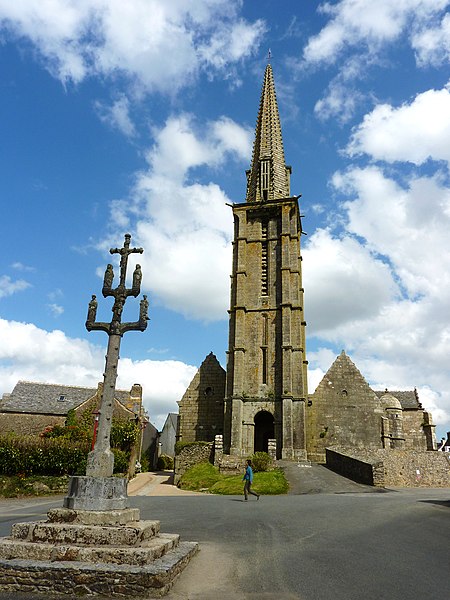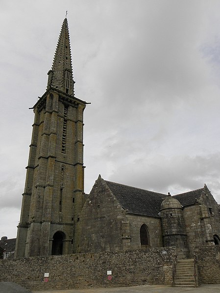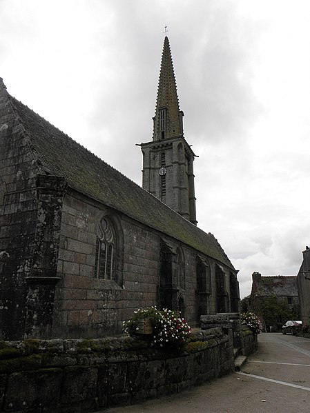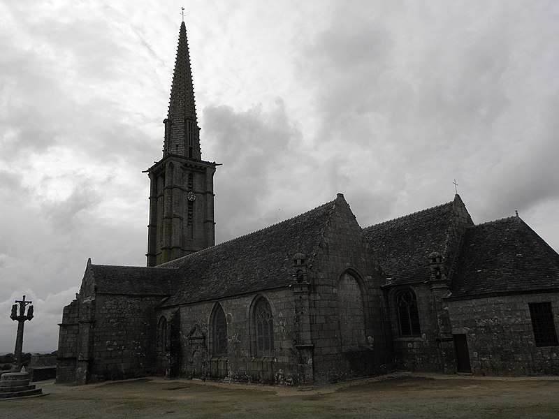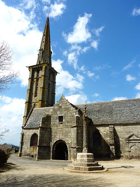 L'église Saint-Yves de Plounéour-Ménez, dans le Finistère, a été reconstruite sur les bases d'un édifice médiéval et porte les traces de transformations amorcées à partir de 1649. Sans transept, la nef, flanquée de deux bas-côtés et dotée d'un porche sud saillant, s'ouvre sur un chœur à chevet plat auquel une sacristie semi-octogonale a été adjointe en 1651. Le clocher, de dimensions remarquables et démesuré par rapport au reste de l'édifice, culmine à plus de 50 m, ce qui en fait l'un des plus hauts du Finistère parmi les églises paroissiales. Frappé par la foudre en 1847, il a été restauré peu après. La date de 1540 inscrite sur le socle semble correspondre aux parties sculptées, à l'exception de certains éléments, comme une tête de saint Pierre peut‑être refaite au XVIIIe siècle. L'église s'inscrit dans un enclos paroissial accessible à l'est par un arc de triomphe en grand appareillage de pierre. Le calvaire du placître, daté de 1540 et l'un des premiers datés de Basse-Bretagne, a été déplacé lors de l'aménagement de l'enclos après le transfert du cimetière en 1925. Parmi les pièces remarquables figurent deux statues de granit de Kersanton du porche sculptées par Roland Doré (Saint Jean et Saint Matthias), une chaire probablement du XVIIe siècle ornée de bas-reliefs représentant les quatre évangélistes et des scènes bibliques sur sa balustrade, ainsi que trois retables, dont ceux du Rosaire et des Trépassés (ce dernier, dans la chapelle nord, a été déposé pour restauration fin 2005). L'église et l'arc de triomphe ont été classés monuments historiques par arrêté du 27 mars 1914; la porte monumentale, le mur de clôture et le terrain de l'enclos ont été classés par décret du 5 juin 1925. L'une des cloches porte une inscription mentionnant la bénédiction par le recteur Y. Le Lann, des parrains et marraines, des membres du conseil, la fonte par Briens frères à Morlaix et la date 1832. L'architecture sobre de l'édifice met en valeur son ampleur et la présence dominante du clocher.