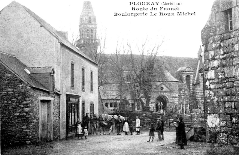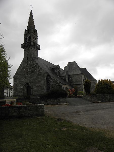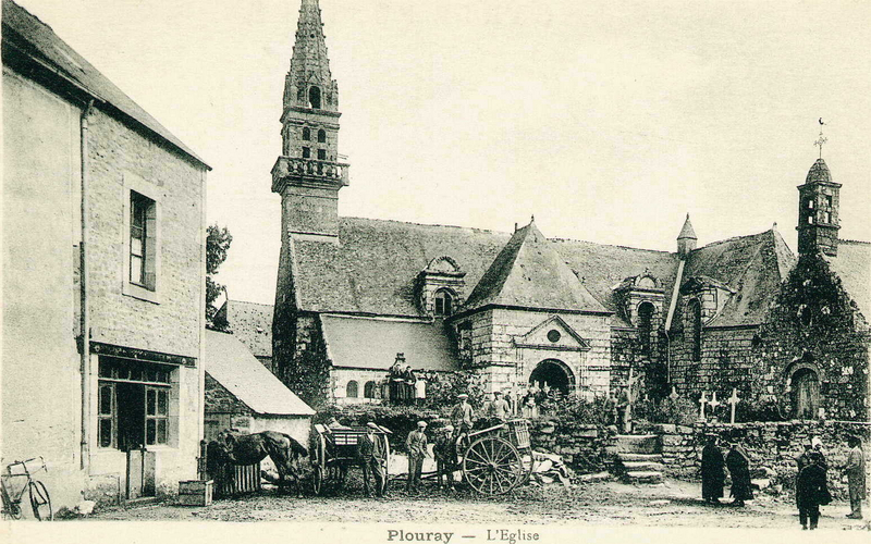 L'église Saint‑Yves se situe au bourg de Plouray, dans le Morbihan. Elle présente un plan en croix avec un transept polygonal ; le clocher, ajouré et pourvu d'une galerie, abrite un ossuaire sous‑jacente. La façade occidentale, à l'exception du clocher et de quelques éléments, remonte en partie à la fin du XVe siècle et une inscription dans le transept porte la date 1486. L'édifice est orné de lucarnes à frontons de style Renaissance, circulaires ou rectangulaires. D'importants remaniements ont été réalisés dans la seconde moitié du XVIIe siècle, attestés par des inscriptions datées de 1661, 1662, 1687 et 1688, et la tour occidentale a été reconstruite en 1758. Le clocher, foudroyé dans les années 1830, a été reconstruit en 1889, et la voûte actuelle, remplacée en 1902, supplanter un ancien lambris daté 1787. Dans le porche figure une inscription de 1867 ; d'autres inscriptions apparaissent sous la voûte et le bénitier porte la date 1688. L'autel du XVIIe siècle a été restauré en 1808 et en 1954, puis avancé au milieu du chœur après 1965. Jusqu'en 1839, l'église était placée sous l'invocation de Saint Rivoal ou de Saint René avant de recevoir celle de Saint Yves. L'édifice est inscrit au titre des monuments historiques depuis le 29 mars 1935. Le cahier paroissial mentionne comme seigneurs prééminenciers les sieurs de Guidfos et de Nouay ; de nombreux écus martelés ou effacés sont visibles en divers endroits, et les armes des Rohan, princes de Guémené, apparaissent au chevet et sur la chapelle des fonts. Les parties les plus anciennes datent de la fin du XVe ou du début du XVIe siècle, mais l'église a subi un important remaniement au XVIIe siècle. À l'extérieur, on distingue la façade occidentale, le flanc sud, le porche méridional, la lucarne de la façade sud et des armes sculptées au croisillon sud. L'intérieur conserve un mobilier notable : un autel du XVIIe siècle et un retable du XVIIIe siècle dans le chœur, deux autels et retables des XVIIIe et XIXe siècles dans les bras nord et sud du transept, un bénitier de 1688 sous le porche, des stalles de 1829 et des fonts baptismaux des XVIe et XVIIe siècles, ainsi que de nombreux tableaux et statues. La chapelle Notre‑Dame‑de‑Lorette, visible à droite de l'église sur des vues anciennes, avait été construite au XVIe siècle et a été détruite en 1948. Pour compléments et illustrations, se reporter aux collections de Wikimedia Commons et aux fiches Topic Topos mentionnées dans les sources.