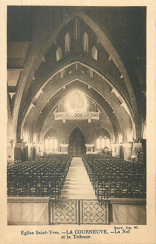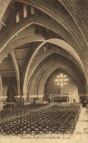 L'église Saint-Yves-des-Quatre-Routes est une église catholique située avenue Lénine à La Courneuve, près du carrefour des Quatre-Routes (place du 8-Mai-1945) en Seine-Saint-Denis. Elle a été construite entre 1930 et 1933 pour remplacer une chapelle de secours, dans un contexte où la banlieue manquait d'églises et d'équipements collectifs. Dès 1923 le diocèse entendait s'implanter dans la commune ; le terrain avait été acheté la même année par l'abbé Dallant. Grâce à l'action de l'abbé Joseph Le Quellec et au soutien financier du vicomte et de la vicomtesse de Gourcuff, un ensemble paroissial put être édifié à partir de 1928. Un patronage conçu par l'architecte Michel Bridet et l'ingénieur Pierre Robert fut d'abord dédié à sainte Thérèse-des-Quatre-Routes, puis les mêmes concepteurs projetèrent l'église, finalement dédiée à saint Yves, patron de la Bretagne et avocat des pauvres, ainsi qu'un presbytère construits entre 1930 et 1933, donnant lieu à la création d'une nouvelle paroisse. Un dispensaire confié aux Sœurs de Saint Vincent de Paul et une salle d'œuvre complétaient l'ensemble ; Pierre Robert supervisa plusieurs agrandissements jusque dans les années 1950. La première pierre fut posée par le cardinal Verdier le 15 juin 1930 et il bénit l'édifice le 26 novembre 1933 ; on rapporte qu'il visita fréquemment Saint-Yves et la fit découvrir à de nombreuses personnalités. On raconte par ailleurs que les bienfaiteurs, désireux de bâtir une église, auraient été sensibles à la misère du lieu lors d'une visite aux Quatre-Routes.