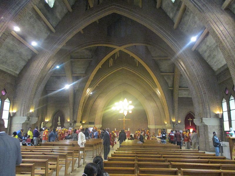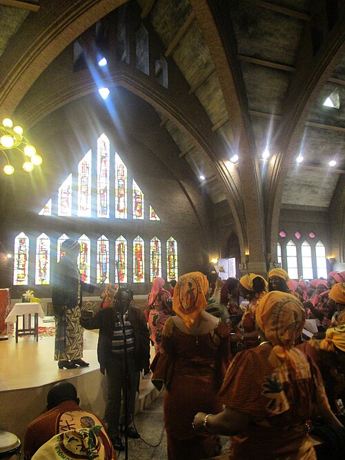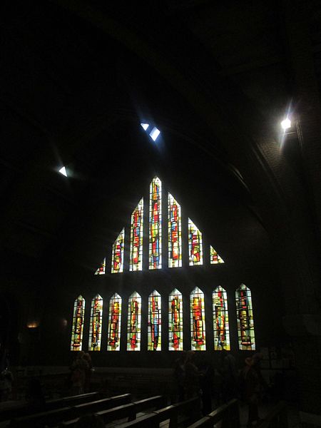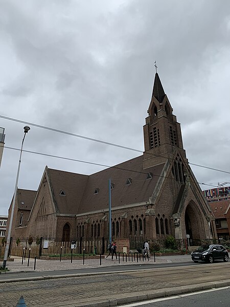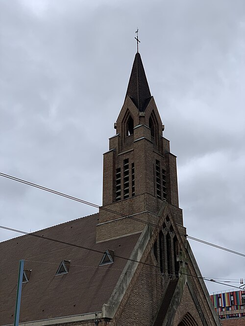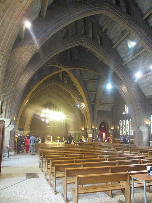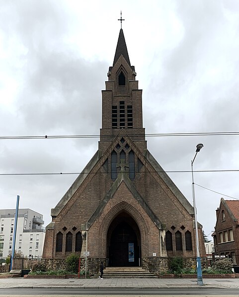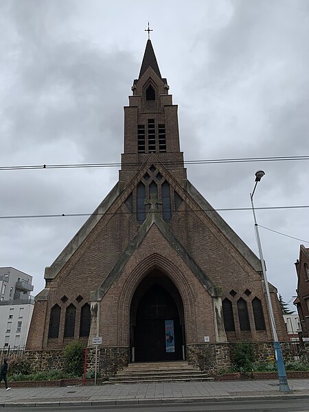L'édifice présente une silhouette élancée dominée par un clocher au toit pointu qui surplombe un porche en arc brisé. Construit en béton armé recouvert de briques rouges, l'intérieur en croix latine mesure 45,6 mètres de long et 23,22 mètres au niveau du transept ; il s'organise sans colonnes, rythmé par de grands arcs ogivaux. Les proportions, simples et harmonieuses, donnent une impression de majesté malgré une luminosité un peu faible ; l'éclairage provient notamment des vitraux de Roger Bâteau et d'un grand lustre central. La sonorisation rénovée permet la diffusion continue de musique religieuse, et des travaux d'amélioration des accès ont été menés en 2012.