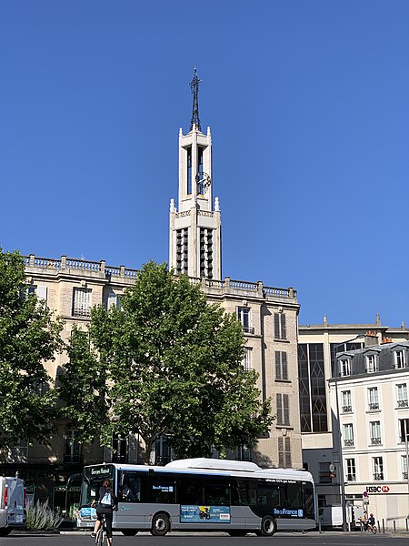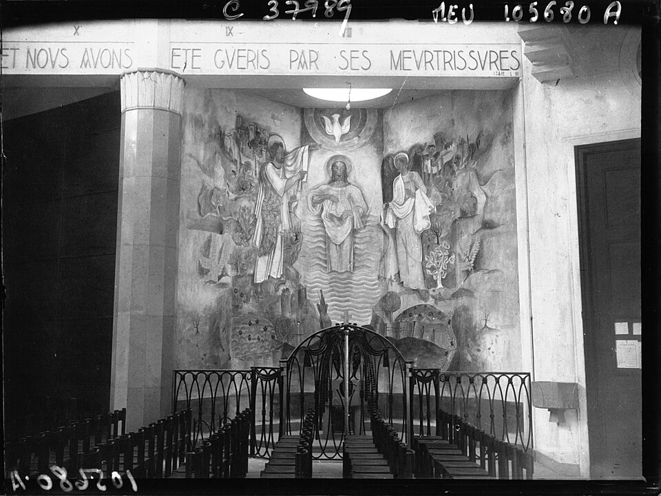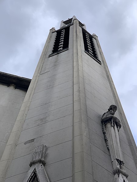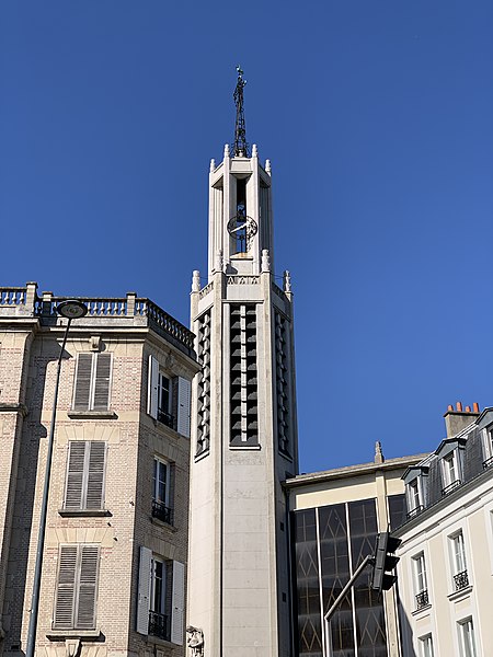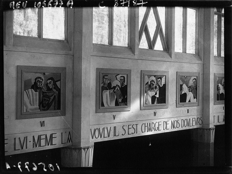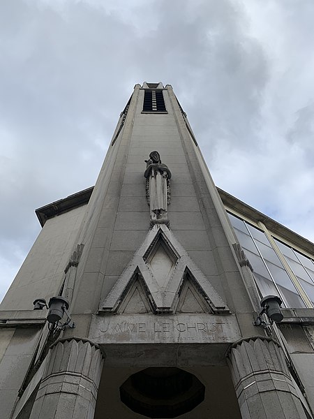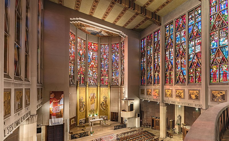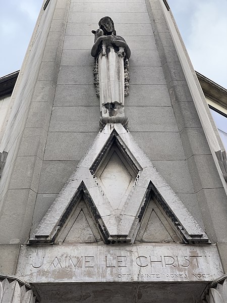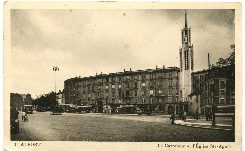 L'église Sainte-Agnès d'Alfort, située à Maisons-Alfort près des rives de la Marne, a été édifiée en 1932-1933 par les architectes Marc Brillaud de Laujardière et Raymond Puthomme. Fruit des "Chantiers du Cardinal" et d'une initiative portée par l'abbé David et ses paroissiens, le projet a été financé principalement par Fernand Moureaux, propriétaire de l'usine Suze. La construction, menée en moins d'un an, fut inaugurée et bénite par le cardinal Verdier le 11 juin 1933. Classée au titre des monuments historiques en 1984, l'église est parfois surnommée "Prisme de Lumière" ou "Sainte-Chapelle des bords de Marne" et figure dans le parcours historique de la ville. Conçue dans un esprit rationaliste et Art déco, son ossature en béton armé témoigne de la maîtrise des techniques nouvelles et d'une inspiration proche de l'église Notre-Dame du Raincy. Les architectes ont su tirer parti d'un terrain exigu et enclavé pour créer un édifice lumineux et cohérent, souvent présenté comme un exemple d'œuvre d'art totale où architecture et arts décoratifs dialoguent. Le clocher hexagonal en béton armé s'élève à 53 mètres ; il comprend deux niveaux de six piliers en béton et pierre blanche, surmontés d'une coupole et d'un fût portant une croix de huit mètres réalisée par Richard Desvallières. Une grosse cloche de 700 kilos, fondue par l'entreprise Blanchet, complète ce dispositif visible et audible depuis le quartier. Le plan adopte la forme d'un losange allongé : la nef large et les bas-côtés dissymétriques sont inclinés de 30 degrés par rapport à la façade, l'édifice ne comporte ni parvis ni transept, et l'abside est polygonale. Le plafond repose sur deux portiques monumentaux à l'avant et à l'arrière et sur des piliers latéraux, libérant une surface de plus de 200 mètres carrés et plus de 300 places assises. Les murs sont percés à mi-hauteur d'importantes baies qui accueillent les verrières de Max Ingrand ; leurs couleurs dialoguent avec les fresques de Paule Ingrand, les statues de Gabriel Rispal, les fers forgés de Richard Desvallières et les torchères de Jean Serrière. Gabriel Rispal a réalisé la Vierge à l'Enfant, Saint Joseph et la statue monumentale de quatre mètres de Sainte Agnès qui surmonte le porche en serrant un agneau. Richard Desvallières a également réalisé le portail d'entrée en chêne sculpté et panneaux en cuivre repoussé, la table sainte et la grille du baptistère, tandis que Raymond Subes a conçu la grille extérieure rue Nordling et le portail des locaux paroissiaux. Le presbytère a été construit par les mêmes architectes en 1934-1935. L'orgue, dissimulé derrière une façade en cuivre repoussé signée Desvallières, est de type Cavaillé-Coll ; installé entre 1934 et 1936, il comprend 781 tuyaux et fait l'objet d'un projet de restauration soutenu par l'Association des Amis de Sainte-Agnès d'Alfort. Enfin, la présence d'une statue d'Yvonne Parvillée rappelle la chapelle antérieure dédiée à saint Antoine de Padoue qui occupait autrefois ce site.