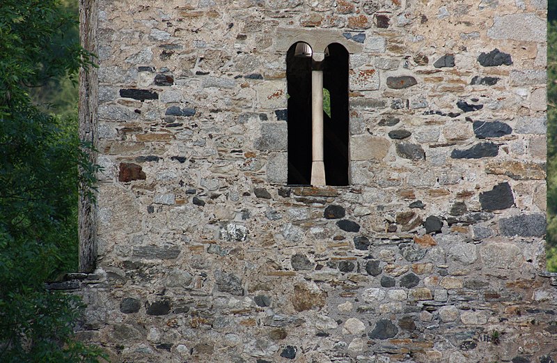 Les murs sont épaulés par des contreforts en granite qui, à l'intérieur, délimitent trois travées inégales et rappellent la fonction de refuge de la chapelle. Une étroite corniche ceint la construction sur laquelle repose une charpente couverte d'ardoises. Les seules pierres travaillées sont les colonnettes des baies du clocher et les arcs plein cintre qui les surmontent, en marbre. L'accès se fait par une unique porte protégée d'un petit auvent, au-dessus de laquelle est encastré un cippe funéraire gallo-romain réemployé comme autel votif ; deux fleurs de lys y ont été gravées.