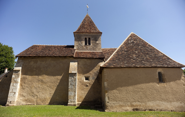 L'église Sainte-Anne de Nohant est une petite église catholique située à Nohant-Vic, dans le département de l'Indre, en Boischaut Sud ; elle dépend de l'archidiocèse de Bourges, du doyenné du Boischaut Sud et de la paroisse de La Châtre. L'édifice a été construit entre les XIe et XIIe siècles et figurait comme dépendance de l'abbaye Notre‑Dame de Déols, comme l'atteste la bulle de Pascal II en 1115. Le chœur, daté du XIIe siècle, s'élève sur la croisée du transept d'une église de dimensions modestes. La partie la plus ancienne a fait l'objet de remaniements au XIIe siècle : les piliers octogonaux, attribués au XIe siècle, portent des chapiteaux du XIIe siècle. Deux énormes piliers octogonaux de la première travée témoignent d'une construction antérieure, tandis que la travée suivante, plus étroite, est coiffée d'une coupole à oculus et limitée par quatre arcades légèrement brisées. À l'ouest, les colonnes primitives ont été remplacées par des piliers massifs au XVIe siècle, mais les anciens chapiteaux, bien qu'érodés, ont été conservés ; on y distingue des quadrupèdes, des oiseaux et des personnages aux têtes volumineuses et aux membres frêles. Les tailloirs présentent des stries, des boutons fleuris et d'autres motifs que l'on rencontre surtout à partir du début du XIIe siècle, ce qui suggère que l'édifice n'est peut‑être pas aussi ancien que son aspect archaïque le laisse penser. Le chœur est voûté en berceau brisé, flanqué latéralement d'une arcature en plein cintre et terminé par un chevet plat ; l'autel primitif est placé sur la troisième marche, symbole trinitaire, l'autel récent sur la deuxième. Une chapelle carrée, construite au XVIe siècle au sud du sanctuaire et accessible par une porte directe, contenait un tableau représentant sainte Anne instruisant la Vierge ; cette œuvre, copie de Maurice Sand d'un tableau de Delacroix, est aujourd'hui déposée au musée George‑Sand et de la Vallée Noire à La Châtre. L'édifice est resté modeste, ce qui a permis la conservation d'un auvent couvert d'un toit en appentis sur montants de bois brut, surnommé par dérision « caquetoire » ; cet élément, rare dans la région, est devenu un signe distinctif souvent associé au romantisme berrichon incarné par George Sand. Les dalles d'origine du sol ont été préservées dans leur disposition, permettant d'y distinguer deux clefs, mais des pavés plus récents ont aussi recouvert certaines dalles anciennes. Des peintures murales sont visibles sur le mur du chevet et à l'entrée du chœur. Les baies ont reçu de nouveaux vitraux réalisés par le maître‑verrier Jean Mauret ; au cours de la journée, les rayons du soleil traversant ces vitraux tracent un chemin de lumière à l'intérieur de l'église. La cloche actuellement en place, offerte par Mme Calamata, belle‑mère de Maurice Sand, remplaça une cloche fêlée et fut consacrée le 9 septembre 1894. L'édifice a été classé au titre des monuments historiques le 2 septembre 1943. Une campagne de rénovation a commencé en octobre 2011 et la remise en état de l'extérieur s'est achevée en juillet 2012. Delacroix exécuta le tableau L'Éducation de la Vierge en juin 1842 lors de son premier séjour à Nohant chez George Sand ; destiné à l'église, il travailla avec Maurice Sand pour fabriquer une toile à partir d'un coutil et fit parvenir les couleurs depuis Paris, souvenir célèbre de son lien avec George Sand, relation qu'il approfondit lors de plusieurs séjours ultérieurs.
