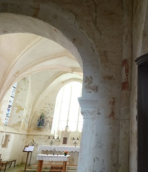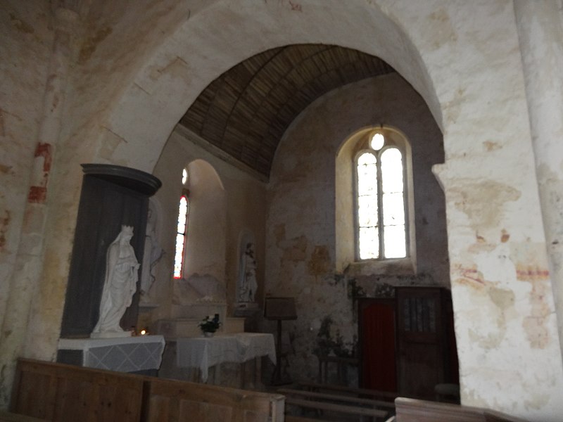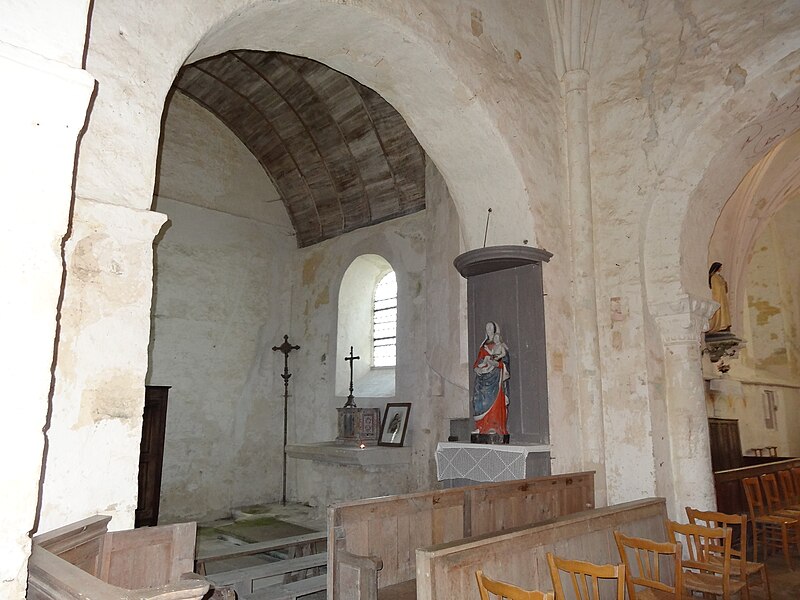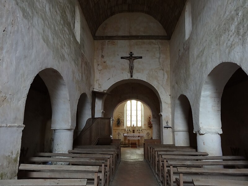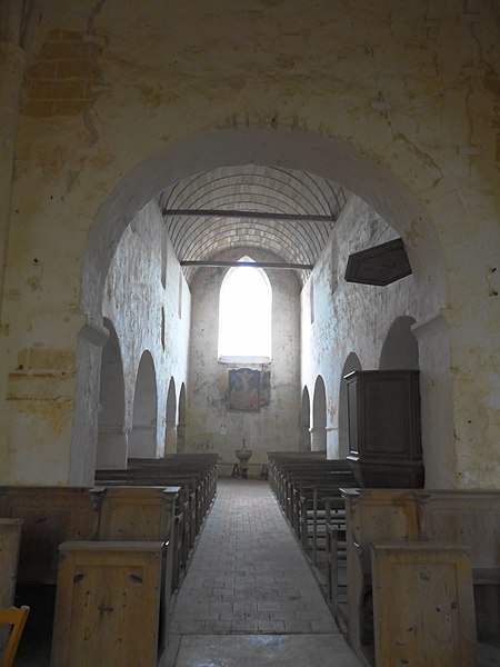 L'intérêt majeur de l'intérieur réside dans l'alternance des supports, piles rectangulaires et piliers cylindriques, premier exemple connu de ce principe en Normandie, qui rythment les arcades en plein cintre de la nef. Ces arcades retombent sur des impostes au décor inhabituel en Normandie; une colonne du côté sud porte un chapiteau très mince orné de volutes. L'éclairage provient de baies percées au XIIe siècle lors d'un surhaussement des murs est et ouest, d'une grande fenêtre occidentale en tiers-point percée aux XIIIe ou XIVe siècles, et d'une petite baie en plein cintre du premier niveau, vestige des ouvertures romanes dégagée au XXe siècle.