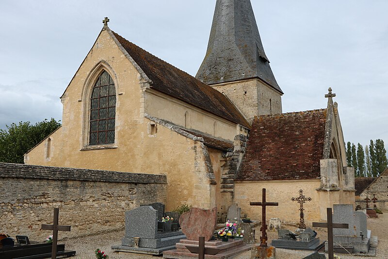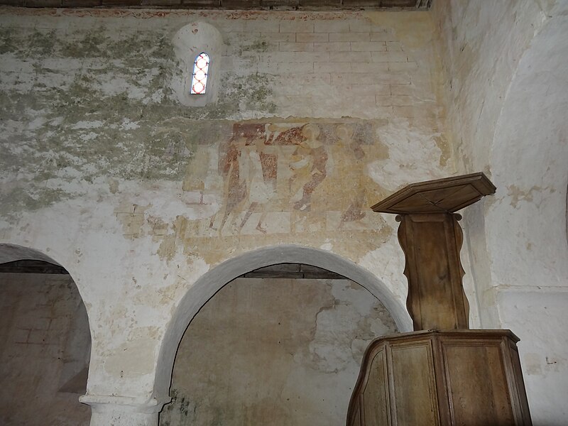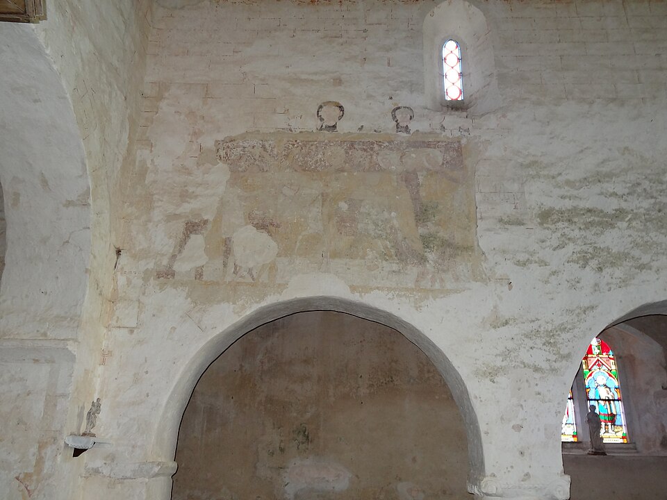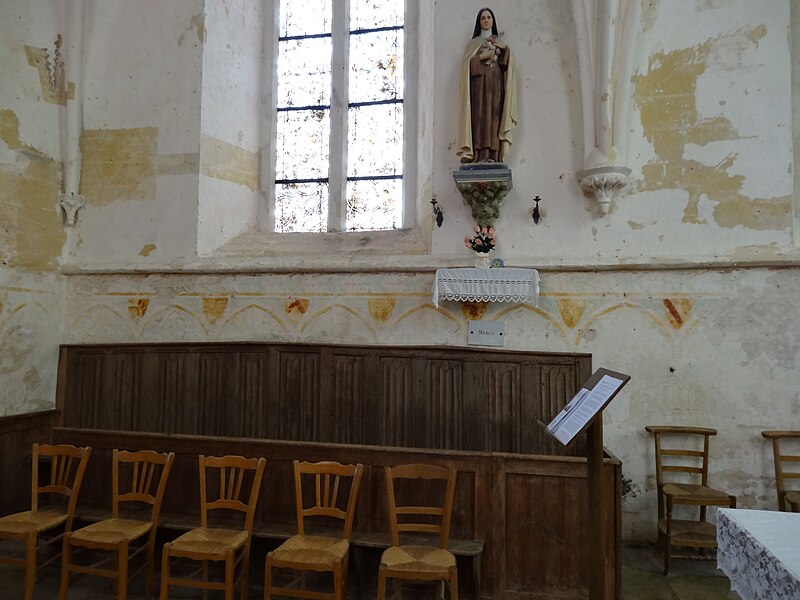 Le chœur du XIIIe siècle est éclairé par de hautes baies en tiers-point à deux ou trois lancettes et couvert lui aussi par une voûte d'ogives. Les murs conservent des peintures murales importantes : au-dessus des arcades de la nef, deux scènes du XIIe siècle, rares en Normandie, représentent l'entrée du Christ à Jérusalem côté sud et l'adoration des mages côté nord. Le chœur et le transept présentent des vestiges peints de diverses époques médiévales, notamment des arcatures en tiers-point et des représentations comme la dormition de la Vierge attribuées au XIVe siècle.