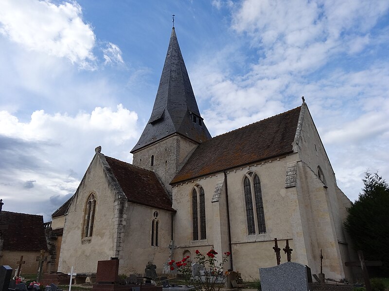 Sur le plan architectural, l'église suit le schéma de la croix latine : une tour carrée peu élevée coiffe la croisée du transept et est surmontée d'un toit à huit pans couvert d'ardoises, tandis que le chœur, reconstruit au XIIIe siècle, se termine par un chevet plat de deux travées soutenu par de solides contreforts. Le portail d'entrée, percé au XIIIe siècle dans le bas-côté sud selon Lucien Musset, présente un triple ressaut porté par trois colonnettes et chapiteaux et est protégé par un porche daté du XIVe siècle; la façade occidentale est percée d'une grande baie en tiers-point du XIIIe siècle. Les parties les plus anciennes, dont le pignon occidental, sont en appareil en arête-de-poisson et ont été pour partie recouvertes d'un crépi lors de travaux d'assainissement ; une description de 1701 signale l'édifice construit en moellons et pierre de taille calcaire, voûté, long de 85 pieds sur 30 de large, avec un clocher autrefois couvert d'essentes.