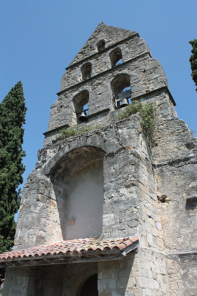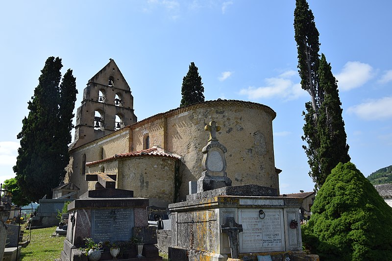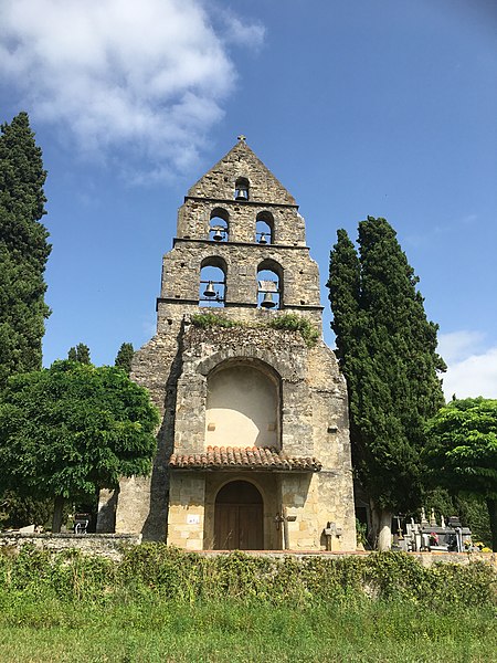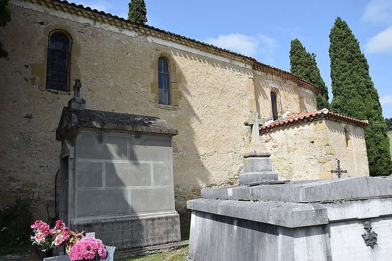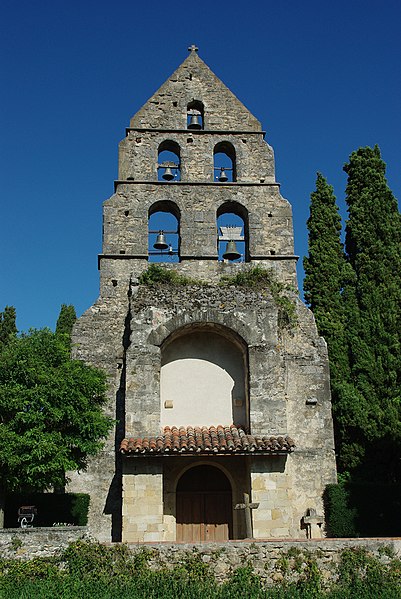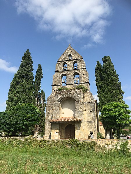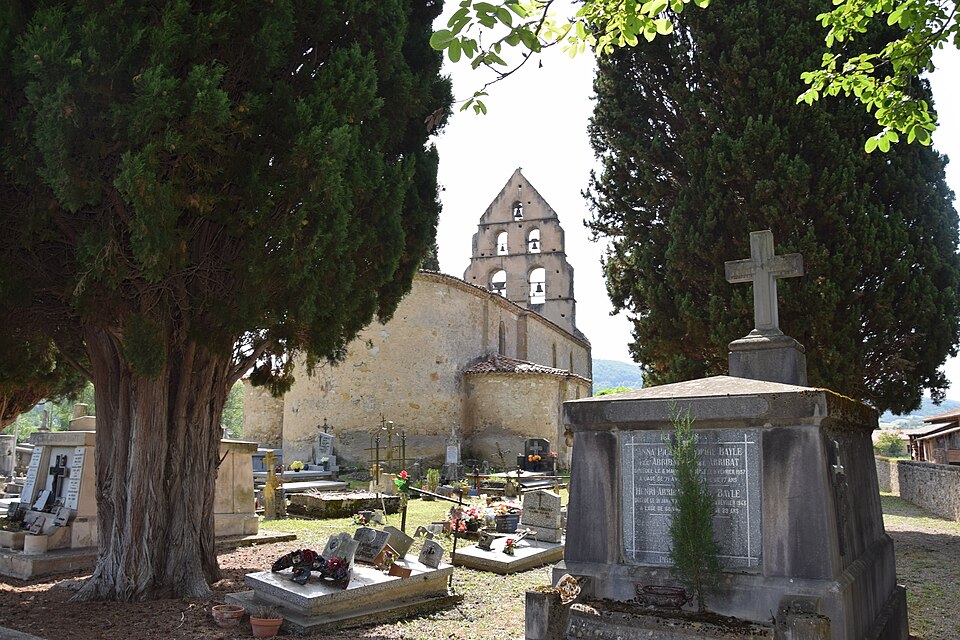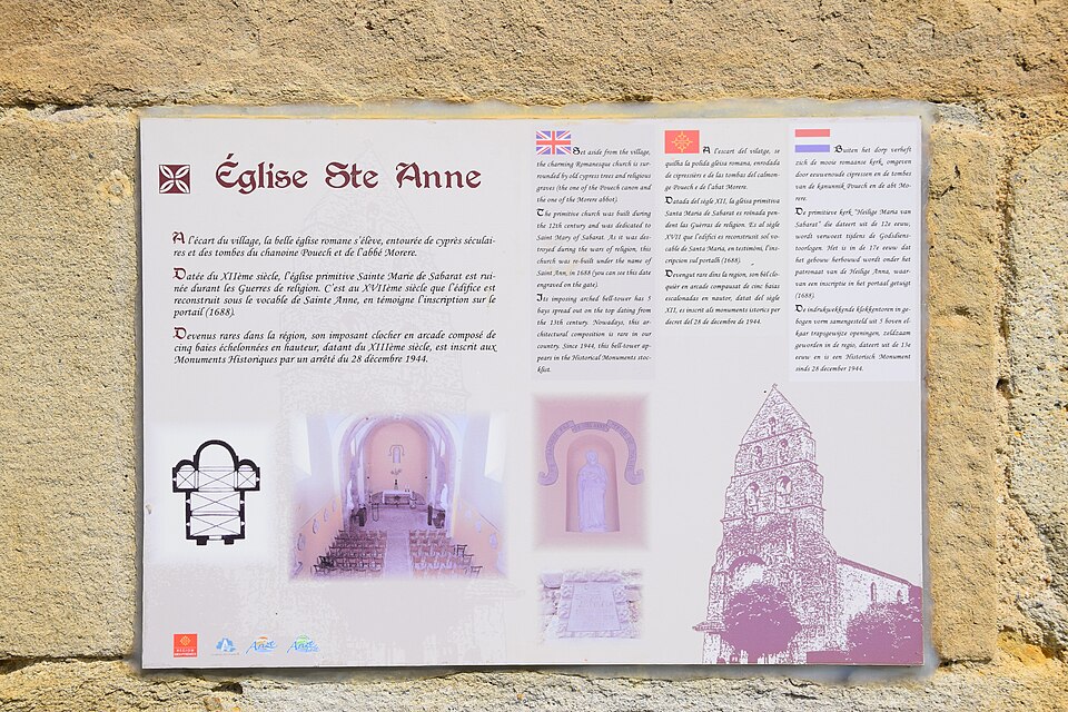 L'église Sainte-Anne de Sabarat se situe sur la commune de Sabarat, en vallée de l'Arize dans le département de l'Ariège, à l'est et à l'écart du village, en surplomb du ruisseau de Menay, avec son cimetière attenant. Plusieurs édifices se sont succédé sur ce site : Saint-Pierre-de-Molières, donnée à l'abbaye du Mas-d'Azil vers 1060, puis Saint-Martin-de-Crébacor, mentionnée en 1120 dans le cartulaire de l'abbaye du Mas-d'Azil. L'ancienne église, datée du XIIe siècle et encore pourvue d'un cloître en 1623, fut ruinée en 1625 lors des guerres de Religion qui affectèrent la vallée de l'Arize. Elle a été reconstruite au XVIIe siècle et semble avoir été achevée en 1688, date gravée sur le portail. Le clocher-mur, daté du XIIIe siècle, est l'élément le plus remarquable : il présente cinq baies réparties sur trois niveaux, chacune abritant une cloche, configuration devenue rare dans la région. Ce clocher a toutefois fait l'objet d'une rénovation qui a laissé un enduit lisse en façade, jugé peu approprié. Le clocher-mur a été inscrit au titre des monuments historiques par arrêté du 28 décembre 1944, et l'église ainsi que son cimetière sont classés comme site depuis le 5 décembre 1944. Des ressources complémentaires existent, notamment des notices Mérimée, des dossiers sur l'Observatoire du patrimoine religieux et des illustrations sur Wikimedia Commons. Une étude bibliographique citée est celle de David Cau-Durban, L'abbaye du Mas d'Azil (817-1774).