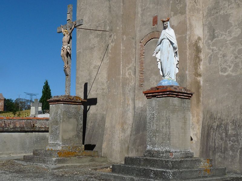 Petite église rurale typique du Lauragais, l'édifice se distingue par la haute silhouette de son clocher-mur et son implantation au milieu du cimetière communal. Construit au XVIe siècle, il a été restauré et voûté au XIXe siècle. L'intérieur présente une nef unique et un chevet à pans. Les peintures murales datent de 1950 et ont été réalisées par François Bernadi, assisté de son jeune beau-frère, le peintre Carlos Pradal. Une restauration conduite en 1996 par François Bernadi a complété le décor de la nef et créé celui du porche. L'ensemble illustre la légende de sainte Apollonie ainsi que divers épisodes de la vie du Christ, sur des fonds représentant des paysages du Lauragais.