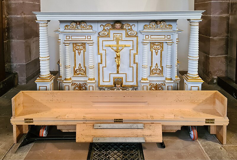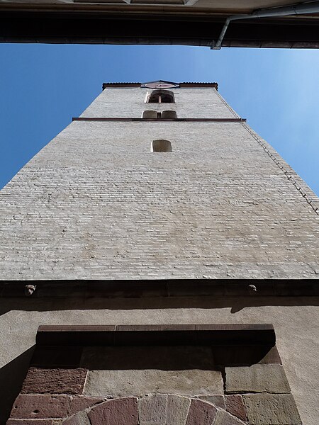 La plupart des structures actuelles datent de la reconstruction de l’église conduite par les maîtres d’œuvre Michel Hatzung et Georges Frédéric Hüttner, dont la première pierre fut posée en 1763 et l’édifice consacré en 1765. À l’exception du clocher, la silhouette générale relève ainsi du modèle baroque du XVIIIe siècle. Le clocher, pour sa part, conserve trois niveaux romans du XIIe siècle, surmontés au XIVe siècle d’un beffroi gothique et abrite la plus ancienne cloche datée de Strasbourg (1410), d’un poids indiqué de 24 à 25 Zentner. L’horloge actuelle, construite par Jean-Baptiste Schwilgué en 1845, a été restaurée au début des années 2000 et reste en état de marche.