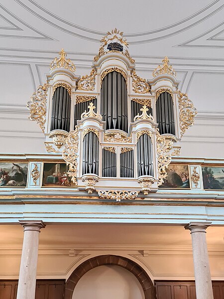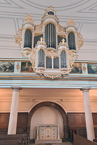 L’orgue principal, œuvre d’André Silbermann achevée au début du XVIIIe siècle et transférée dans la nouvelle église en 1765 par Jean-André Silbermann, a connu de nombreuses transformations au fil du temps : pneumaticisation en 1911, enregistrement d’Albert Schweitzer en 1936, remplacement instrumental partiel en 1952 et classement successif du buffet en 1997 puis de la partie instrumentale en 2000. Un important chantier de restitution a été mené de 2011 à 2015 pour restituer l’instrument à son état historique, en consolidant et complétant la boiserie et en reconstituant la tuyauterie manquante à partir des éléments conservés. Le dispositif actuel associe une mécanique et une console neuves, trois grands soufflets cunéiformes et une tuyauterie pour partie d’origine, pour partie refaite d’après les modèles anciens. Un petit orgue de chœur positif, mobile, a été construit par Alfred Wild en 2001.